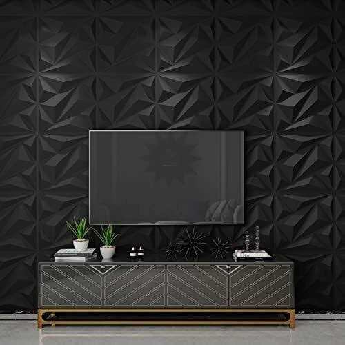 Art3dwallpanels 33 Pack 3D Wall Panel Diamond for Interior Wall dcor PVC Flower Textured Wall Panels for Living Room Lobby Bedroom Hotel Office Black