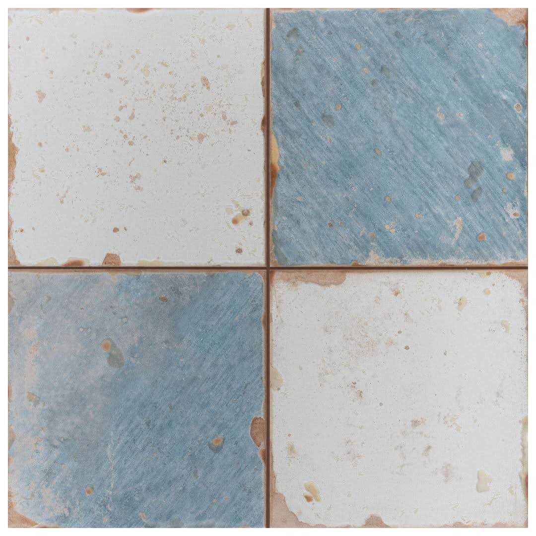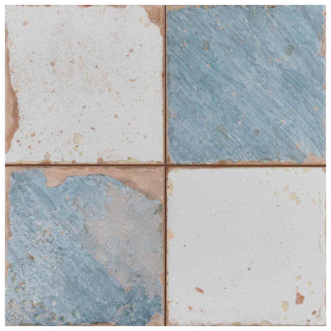 Inspired by the sun-drenched streets of Spain, our tile brings vintage charm to your interior. The low-sheen glaze is offset by imitations of scuffs and spots that mark well-loved, century-old tiles. Rich red tones from the ceramic underneath peek through, adding a worn finishing touch to this uniquely aged piece. There are 8 different variations of this pattern randomly spread throughout each case, it is easy to capture the authentic appearance of a matured installation. Save time and labor spent arranging smaller square tiles and instead install these durable ceramic slabs, which have four squares with realistic lines in between to mimic grout. The scored grout lines can be grouted with the color of your choice to further customize your installation. Tile is the better choice for your space. This tile is made from natural ingredients, making it a healthy choice as it is free from allergens, VOCs, formaldehyde, and PVC.