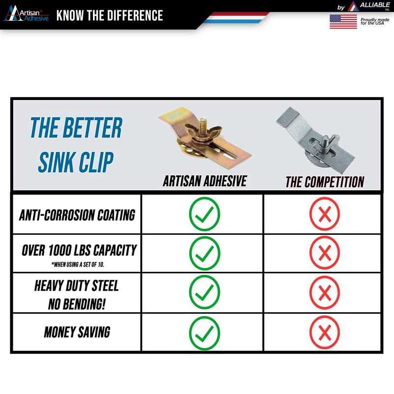 Artisan Adhesive Premium Sink Clips-10 Pack Kit, Undermount Sink Clips, Sink Brackets, Bathroom Sink Clips, Kitchen Sink Clips, Epoxy Sink Clips, Sink