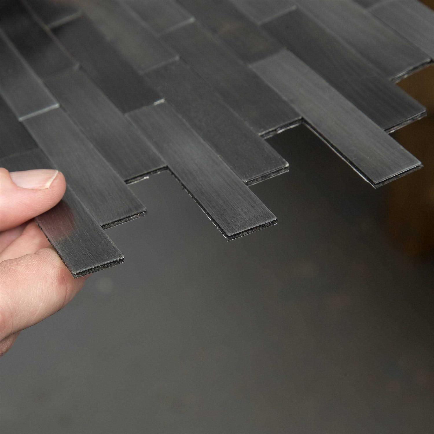 Individual metal tiles with varying color schemes are treated with different aging techniques for a look that reflects your unique style. One pack includes two panels and covers approximately 1 sq ft; Distressed metal panels are manufactured from a combination of tin and steel alloy The peel and stick application method allows for a one-day installation of any accent wall or kitchen backsplash Perfect for accent walls, kitchen backsplash, headboards, bathroom walls Panels are easily cut with a large tin snips Aspect Peel & Stick Distressed Mini Metal panels are the simple, DIY way to add the aged look of metal to your walls without having to hire a contractor. These mosaic-style panels are made of real metal and are available in beautiful colors to add depth and character to any design scheme. Simply peel off adhesive backing and stick to your wall. Aspect Distressed Mini Metal is perfect for any room in the house, so it’s easy to cover full walls or use as an accent to complement all types of decor trends.