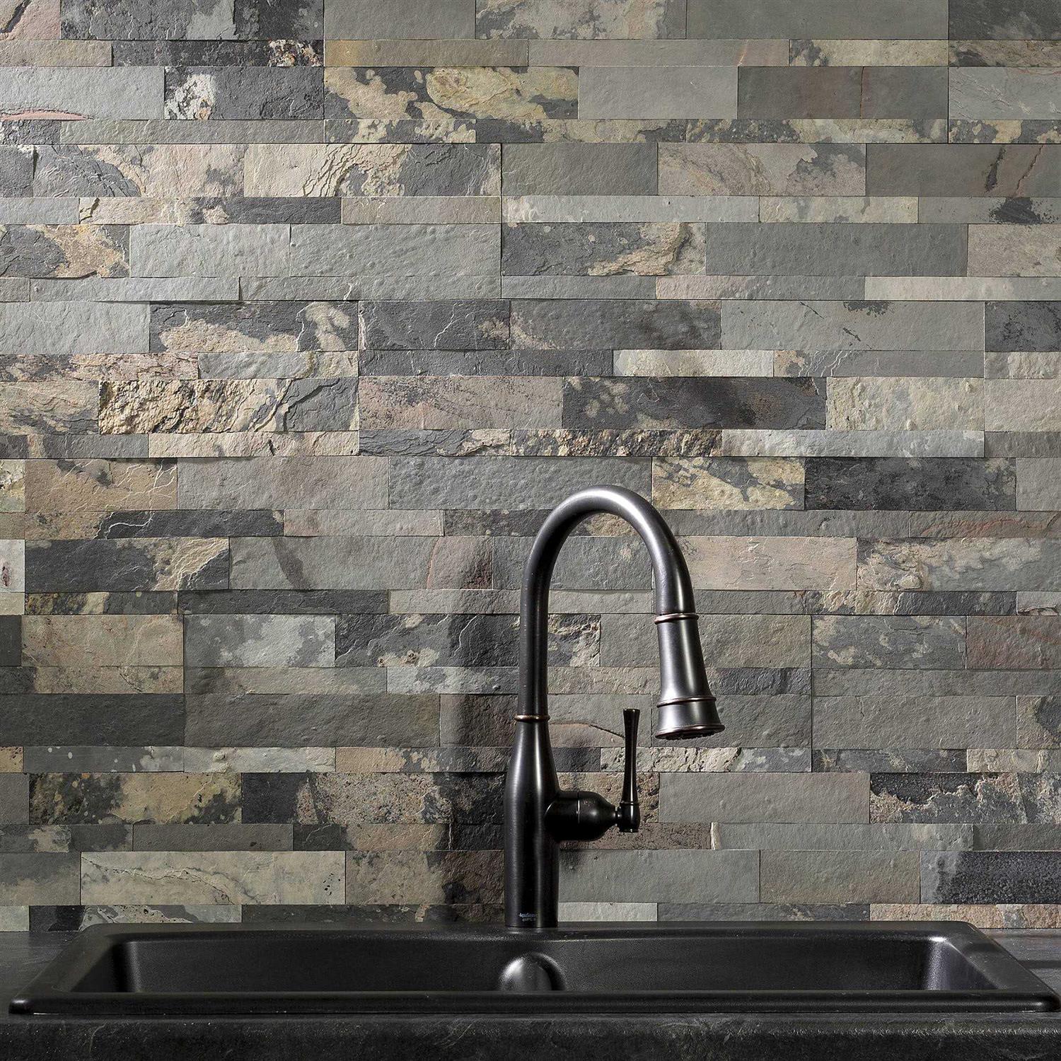 Aspect Peel and Stick Stone Backsplash Medley Slate Single Tile