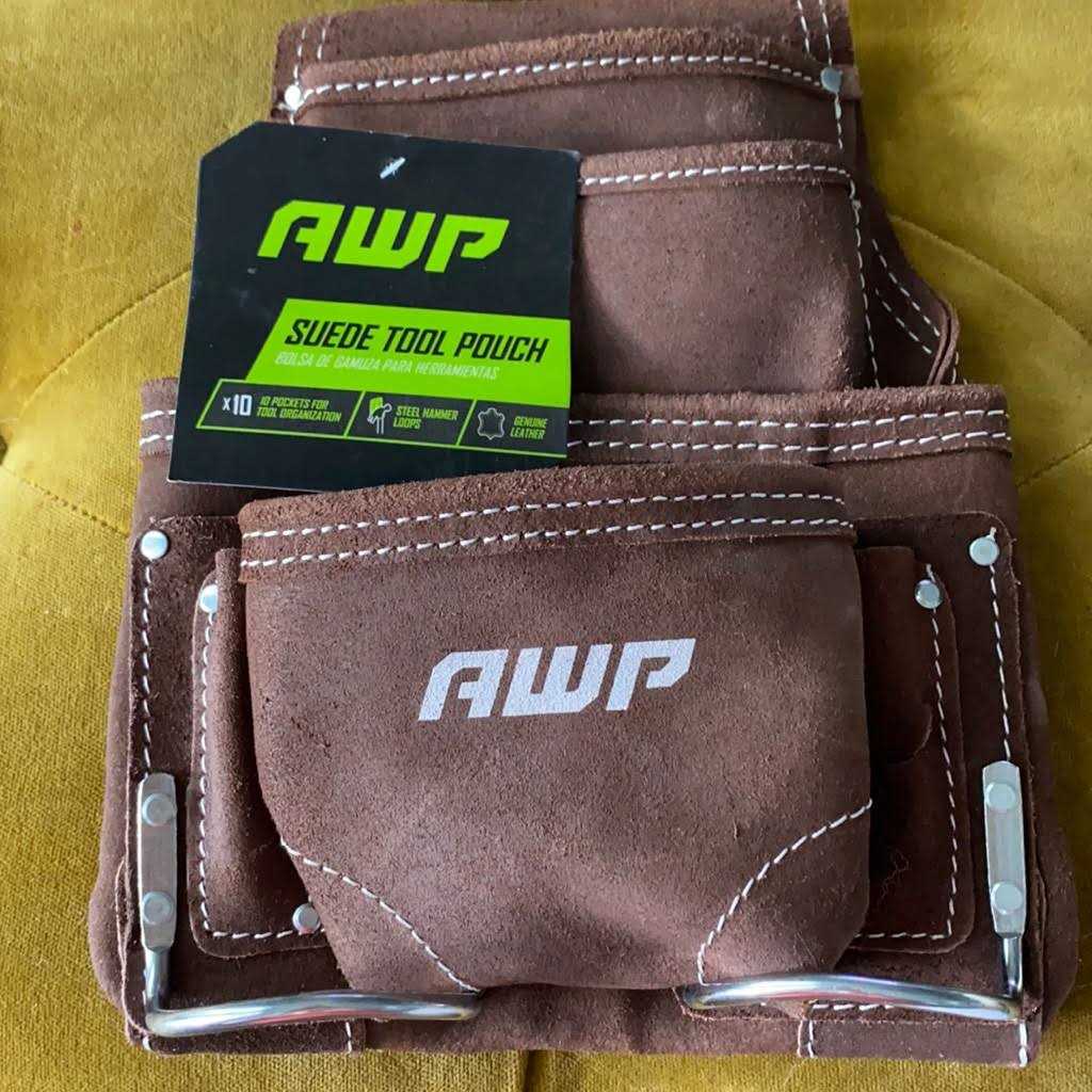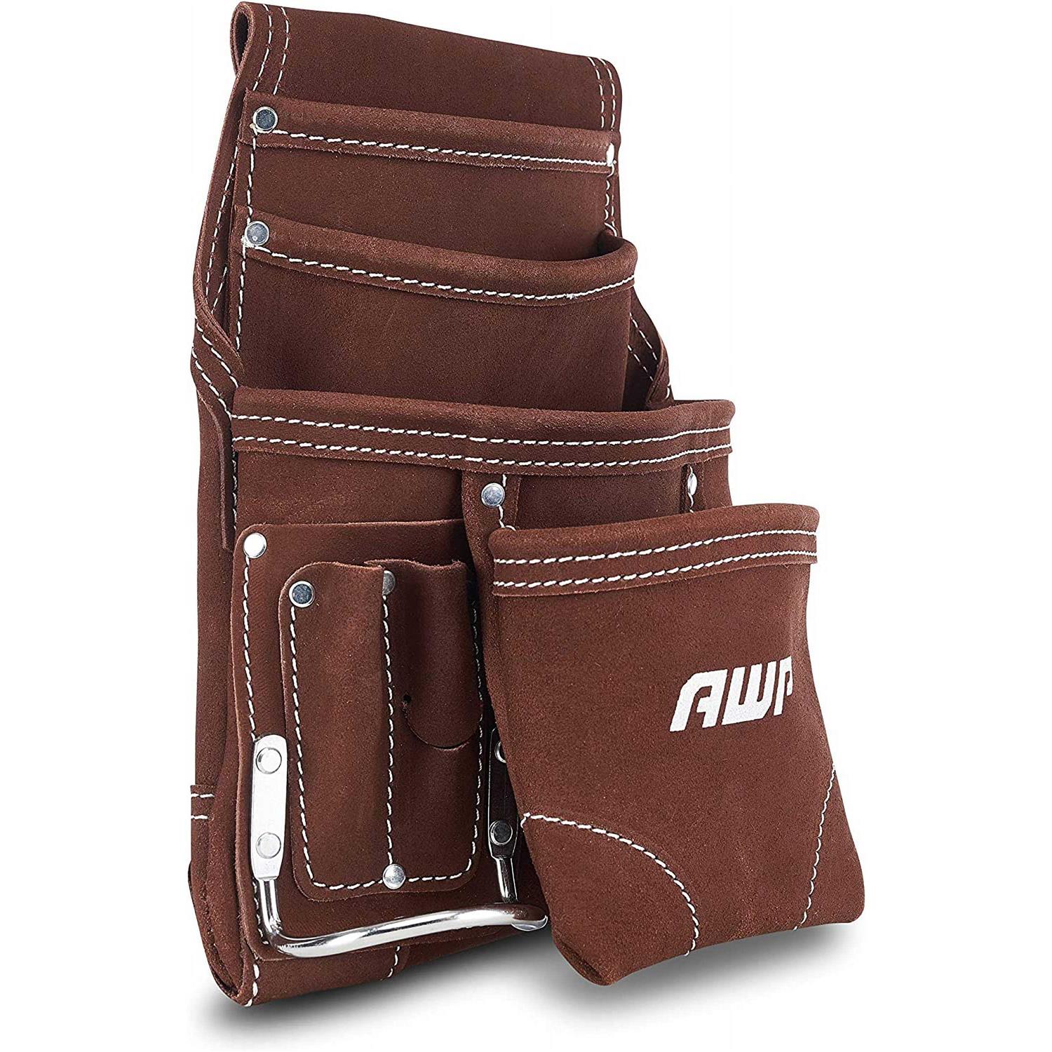 - AWP 10-Pocket Suede Tool Pouch is made from durable suede leather and designed for easy vertical tool organization and access