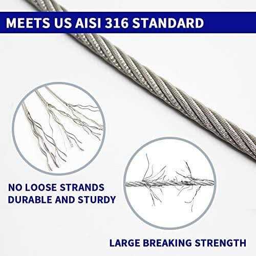 Azdele 1/8 T316 Stainless Steel Cable Wire Rope Aircraft Cable for Deck Cable Railing Kit