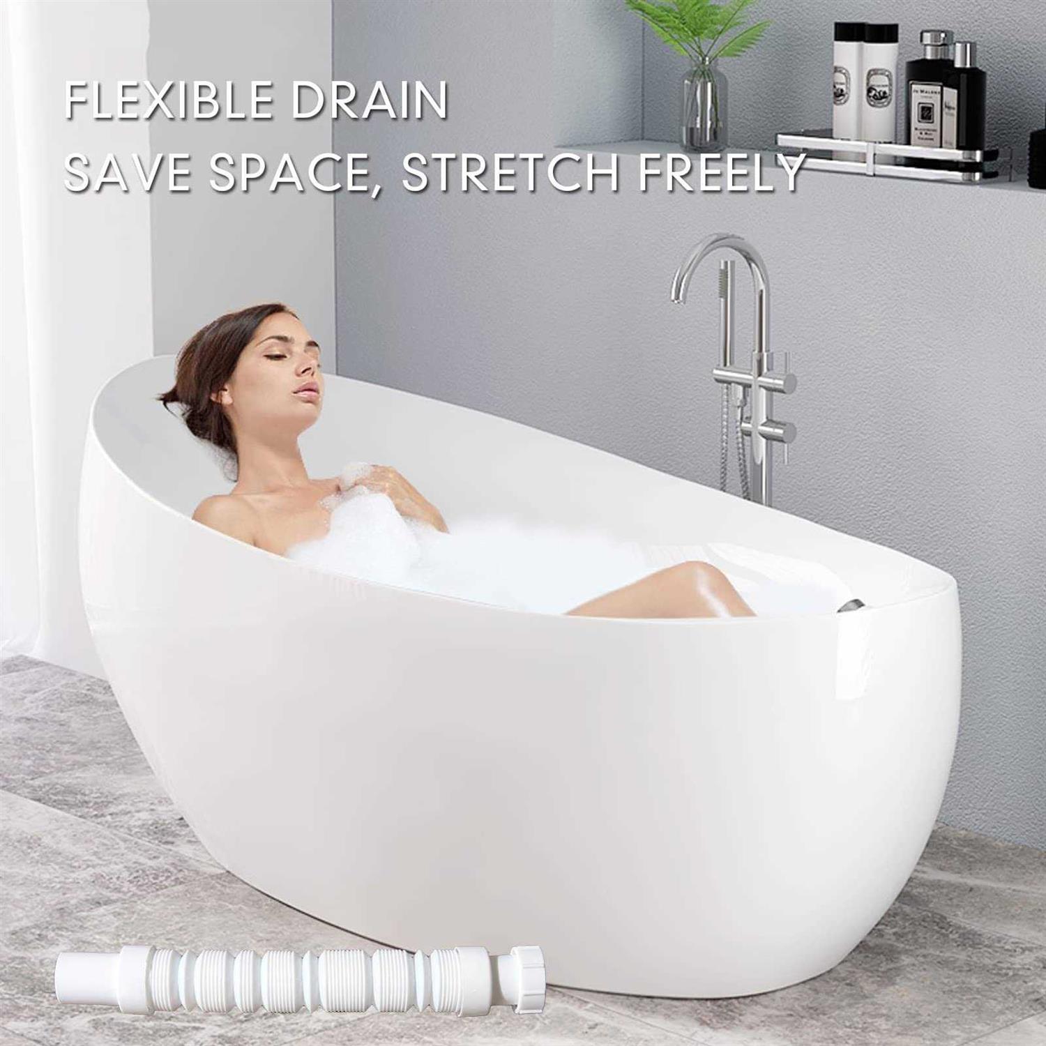 Bathtub Shower Drain Pipe, Low Profile Flat 1 1/2 P Trap Kit, Flexible Freestanding Tub Drain for Bath