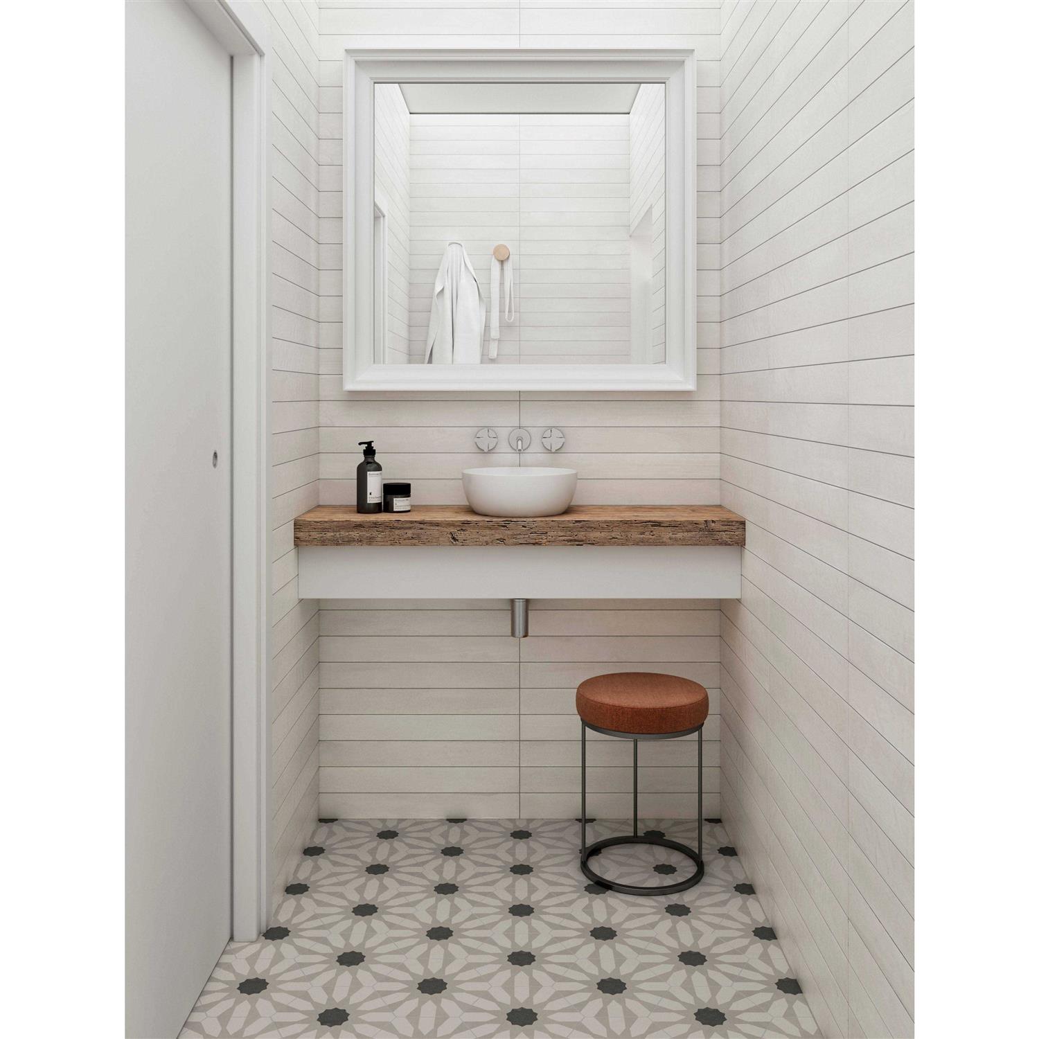 Add geometry to your floors and walls with Allora, an Italian-made matte porcelain tile that comes in three shapes: Rectangle (3 x 24), Rhomboid (7.38 inch x 12.75 inch) and Hexagon (8.5 x 10). The neutral colors of White, Gray and Black blend well with any room style. The hexagon shapes also come in three deco options in Fiore (floral pattern), Stella (star pattern) and Telaio (hexagon pattern). Create a solid-colored look, a complete patterned design, or combine the solids and decos for your own look.