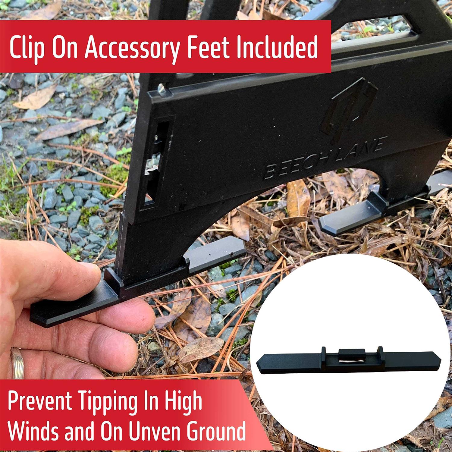 THIS SET INCLUDES THE 20 FOOT RV SEWER HOSE SUPPORT PLUS ACCESSORY CLIP ON FEET FOR EXTRA STABILITY- Includes patent pending clip-on accessory feet that prevent the support from tipping in high winds and sloping grounds. A highly recommended accessory pack that increases the sewer hose support stability when camping on sloping uneven ground or in gusty winds. QUICK SETUP AND COLLAPSE- Beech Lane’s patent pending 20 foot RV sewer hose support deploys in a matter of seconds and packs away even faster with it’s proprietary nesting design. Fits all 3″ wide RV sewer hoses. Supports a full 20 foot RV sewer hose length. NESTING SUPPORT PACKS DOWN FOR SMALLER STORAGE SIZE THAN COMPETITION- Storage space is at a premium in your RV, this design doesn’t waste an inch of it. The patent pending links nest inside the larger support panels to reduce the storage size of this support, making it over 30% smaller when collapsed then competition. DESIGNED AND TESTED IN T