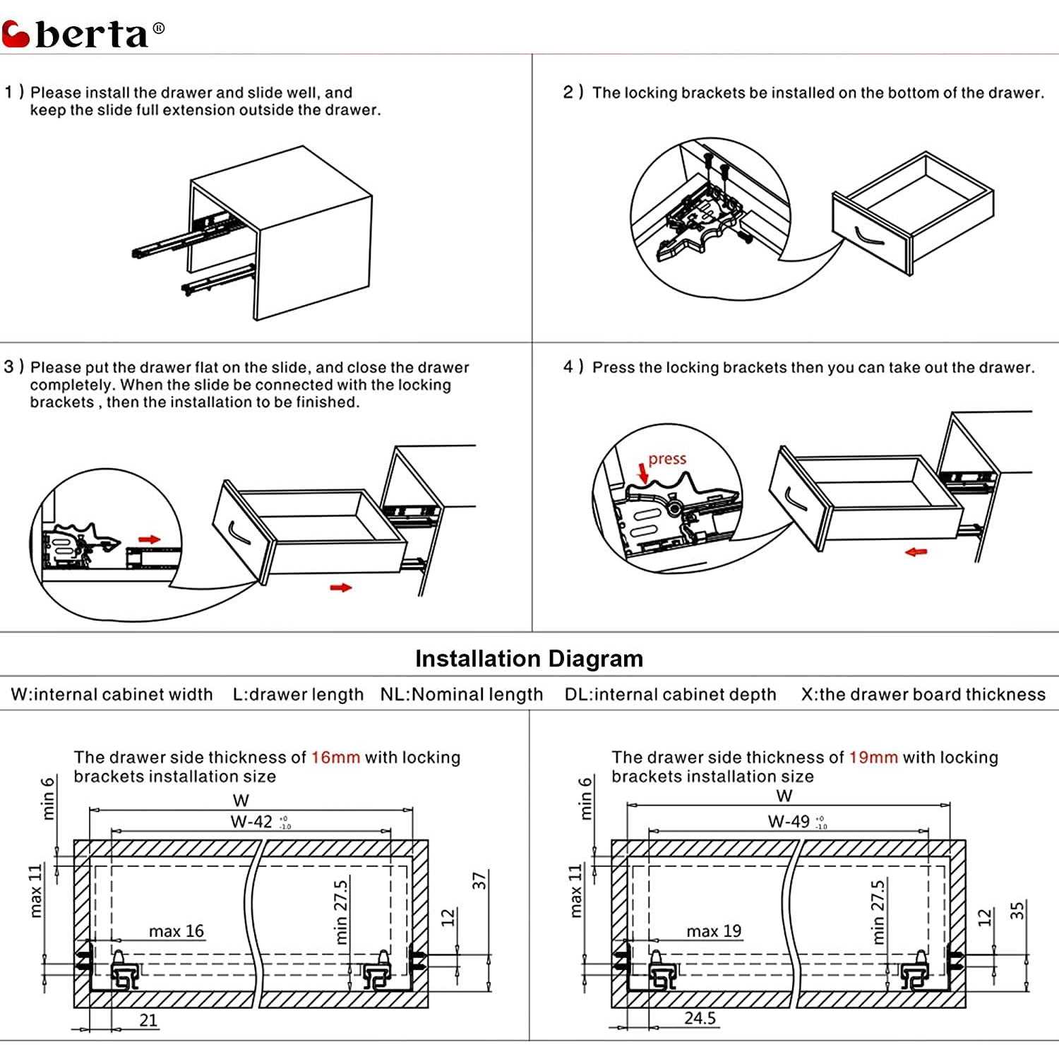 - 5-pair 18 in. under mount drawer slide, 5-pair locking device, 5-pair plastic rear bracket and installation screws