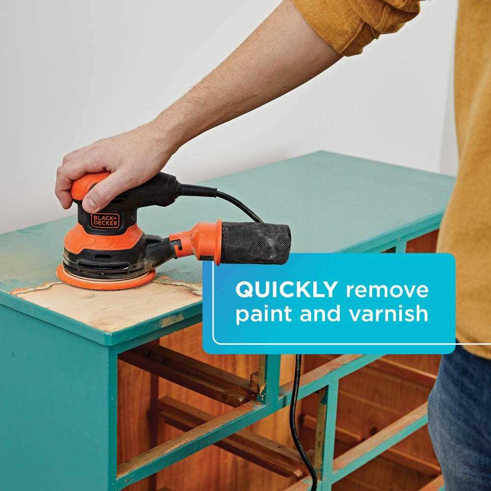 The beyond by BLACK_DECKER 5″ Random Orbit Sander is perfect for anything from removing paints and varnishes, to giving your project a smooth finish. With a compact design and a 3 position grip, the Sander fits those hard to reach spots with ease. Its powerful 2.4 amp motor delivers 12,000 random orbits per minute, for a swirl-free finish. An assortment of common sandpaper is included. And when you’re done, the built-in high-performance dust collection bag makes clean-up a breeze. Furniture rehab and DIY projects have never been this easy.About beyond by BLACK+DECKER beyond by BLACK+DECKER curates tools for the DIYer and home improvement enthusiast. Make projects fun again with easy-to-use and efficient devices to tackle jobs of all sizes. Home, garden, and yard maintenance have never been this effortless.