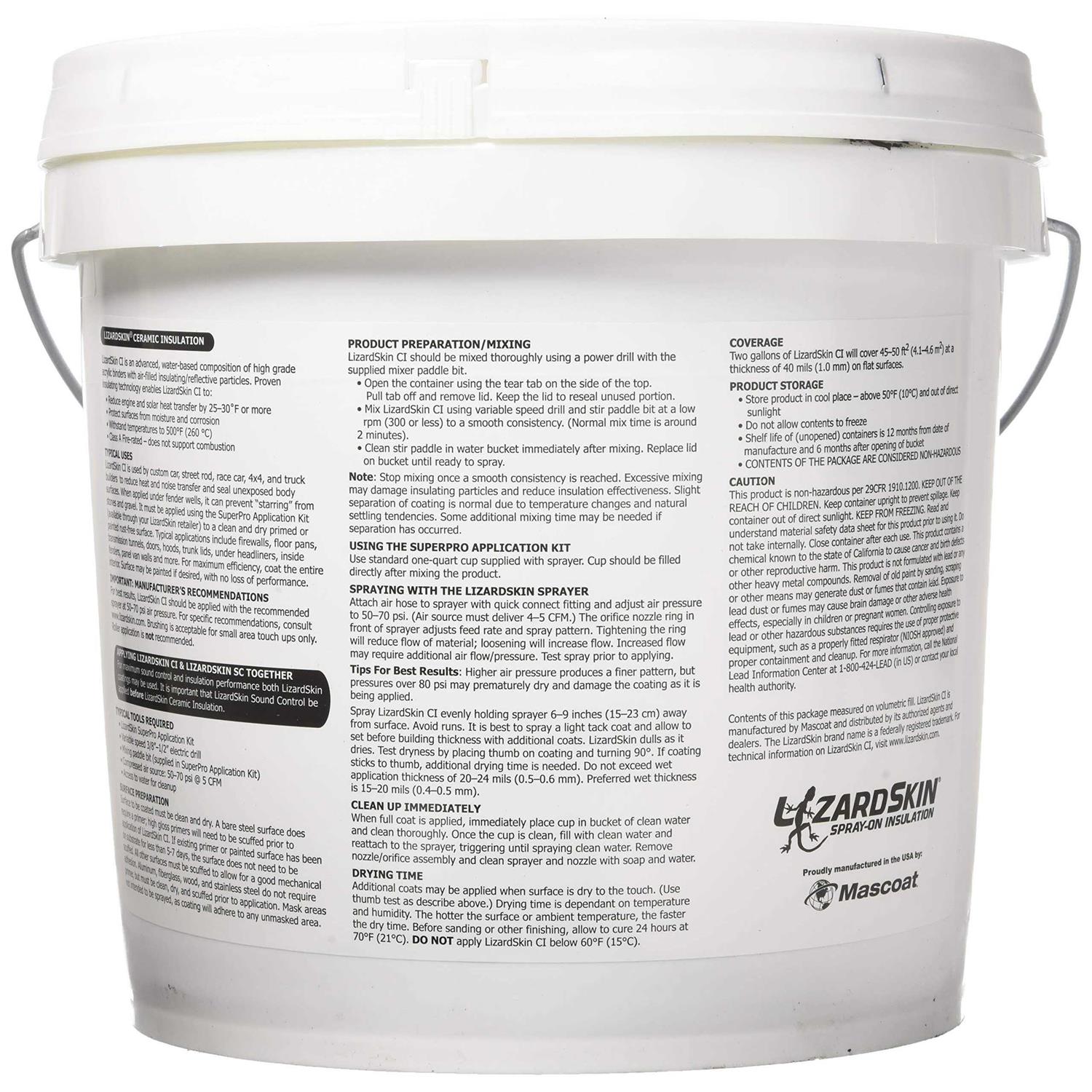 LizardSkin 50100 Thermal Insulation, LizardSkin Ceramic Insulation, Black, 2 gallons, Spray-on, Each – LizardSkin Original Ceramic Insulation is a water-based composition of high-grade acrylic binders with air filled reflective and sound absorbing ceramic particles. LizardSkin is non-toxic and Class A fire-rated. LizardSkin is an innovative easily applied coating system designed to diminish both heat and sound. Applied by spray method it forms a sealed, seamless and flexible black membrane, perfect for cars and trucks, street rods and customs, race cars, buses, refrigerated trailers, RVs, motor homes, experimental aircraft, and high end audio installations—wherever heat and noise are a problem. LizardSkin is completely water soluble, meaning easy clean-up with just soap and water. Each 2-gallon container covers 46-50 square feet with .040-.060 in. thickness.