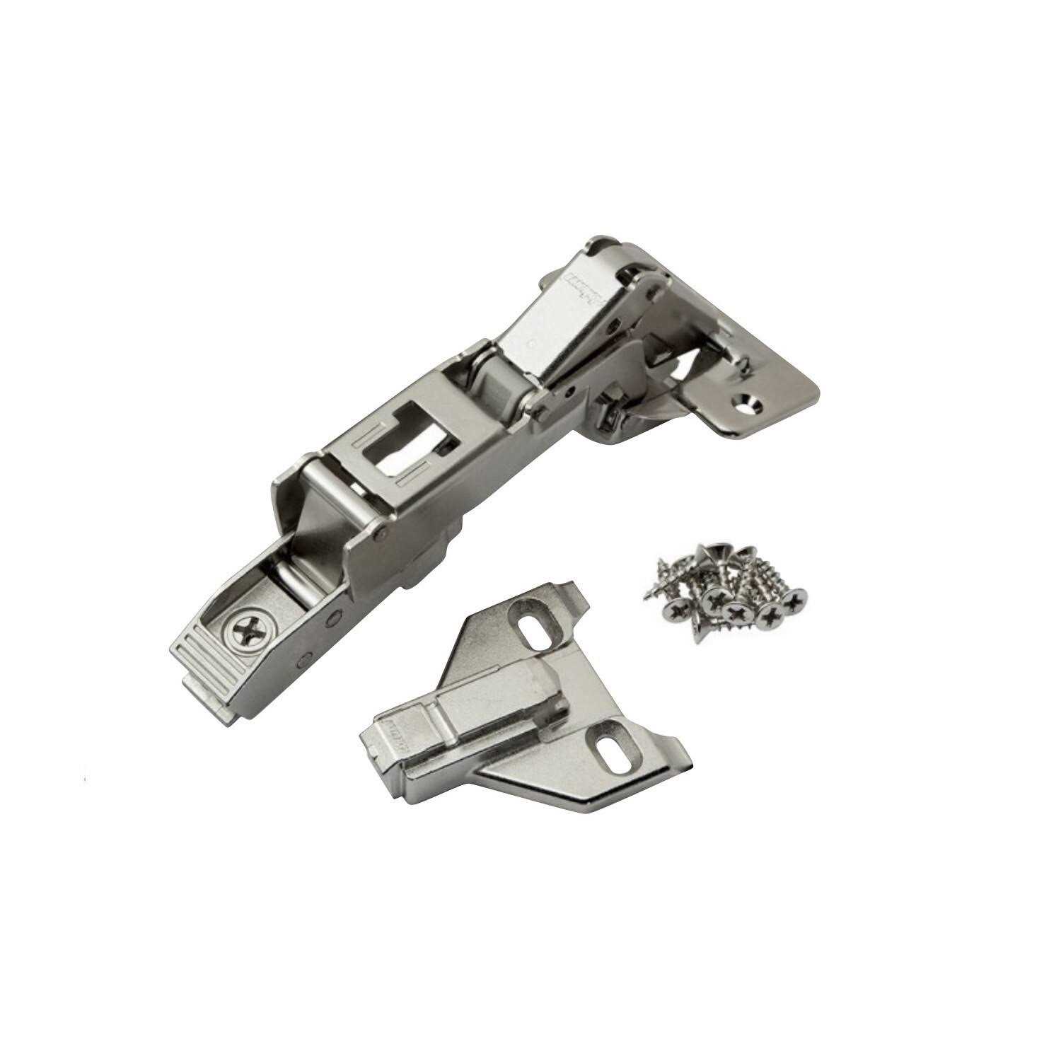 Designed for face frame cabinets, these nickel-plated hinges offer a large 170 degree opening capacity for greater access to cabinet drawers and pullout shelves. Snap-closing action and clip-on assembly provide added performance and installation convenience. 35 mm hinge cup hole. These 170 degree zero protrusion hinges allow pullout shelves and drawers to slide out without being obstructed by the door. Perfect for pantries and kitchen cabinets! a snap closing feature eliminates the need for additional catches and ensures secure closing action. 3-way adjustability, designed to operate on 3/4″ thick doors. Instructions include directions for overlays of 7/16″, 1/2″ or 5/8″. Clip-on feature lets you install/remove door without removing any hardware. Includes all mounting hardware backed by a Blum hinges are preferred throughout the world by cabinetmakers, kitchen manufacturers and consumers. The Blum clip hinge has become the industry standard for concealed hinges. All Blum hinges are backed with a lifetime guarantee. Blum is ISO 9001 certified which means that you are assured of consistent quality in every Blum hinge.