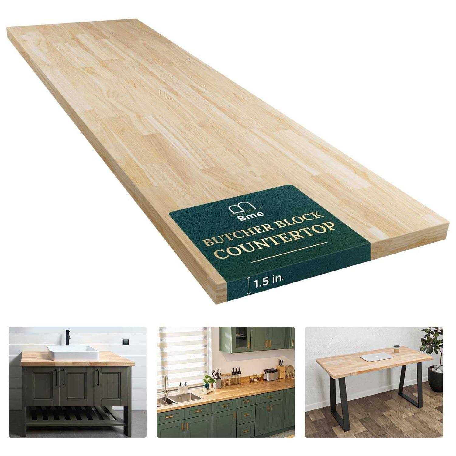 Bme Unfinished Hevea Solid Hardwood Butcher Block Countertop for DIY Wood Table Top