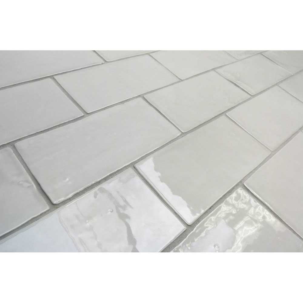 Lancaster 3×6 Dove Ceramic Tile The beauty and timelessness of subway tile comes alive in the luxe Lancaster Collection. Made of ceramic these magazine-worthy tiles stun in any space they’re placed. They have an almost handmade feel thanks to their textured bodies and high-shine finish. Whether you use the Lancaster Bianco Tile as a shower wall tile or the Lancaster Open Seas Tile as a kitchen backsplash the design outcome is sure to delight you. With unmatched versatility you can create seemingly endless patterns with this tile think off-set or eye-captivating chevron. The unique appearance of these tiles create a trendy timeless and high-end ambiance. Available in 7 color options 2 sizes and a deco format. “Great subway tile with a handmade look!” The Dove tile in a traditional herringbone pattern above the range looks awesome.