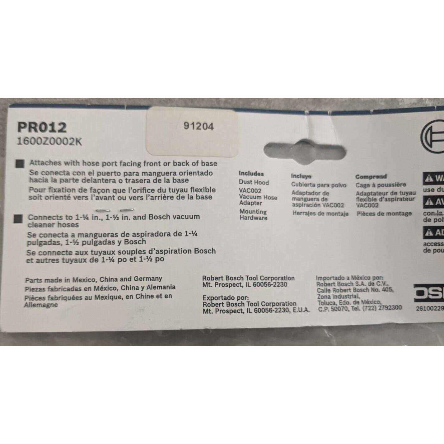 The PR012 dust hood is for use with PR011 palm router plunge base. It makes it much easier to keep work area clean the PR012 can be attached to the plunge base with hose port facing either the front or back of base. The PR011 connected directly to Bosch hoses. The VAC002 vacuum hose adapter is included to allow the PR011 to be connected to 1-1/4 In. and 1-1/2 In. vacuum cleaner hoses.