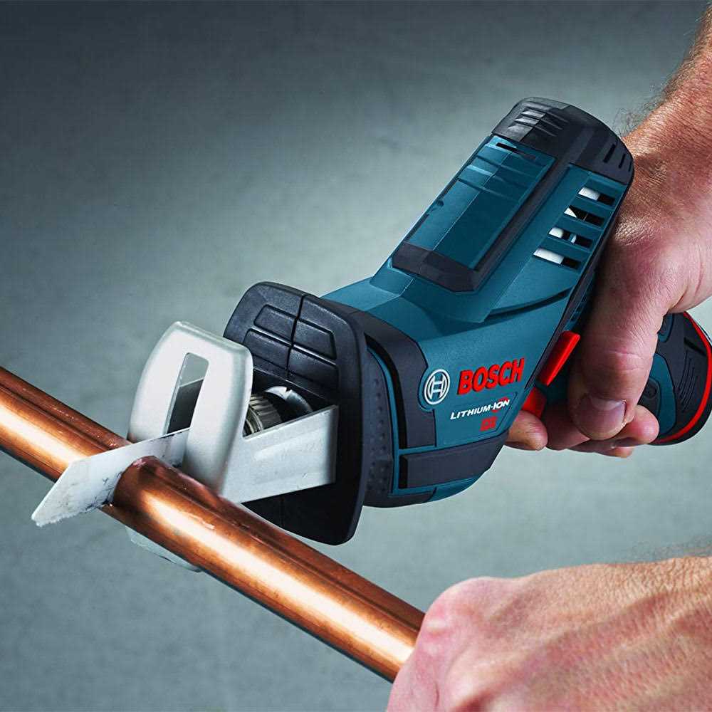 The Bosch PS60 12V Max Pocket Reciprocating Saw is the lightweight, compact choice for tight spaces and difficult materials, with a powerful motor and fast performance. This saw is only 11.0 In. long, with an angled handle for balance and control, ideal for overhead use. It weighs just 2.2 Lbs. (tool only, not including battery). But the motor delivers up to 3,000 no-load strokes per minute (much faster than a hand saw), and it is tough enough to cut different types of materials such as copper and conduit. The saw features a durable design and a front rubber-like wrap-around boot, to help protect internal parts from dust, debris and water. The soft-grip top and body allow multiple grip positions for superior ergonomics. It comes with an LED light to effectively illuminate dark work spaces as well as a battery fuel gauge to indicate capacity level. The blade-change system is tool free.