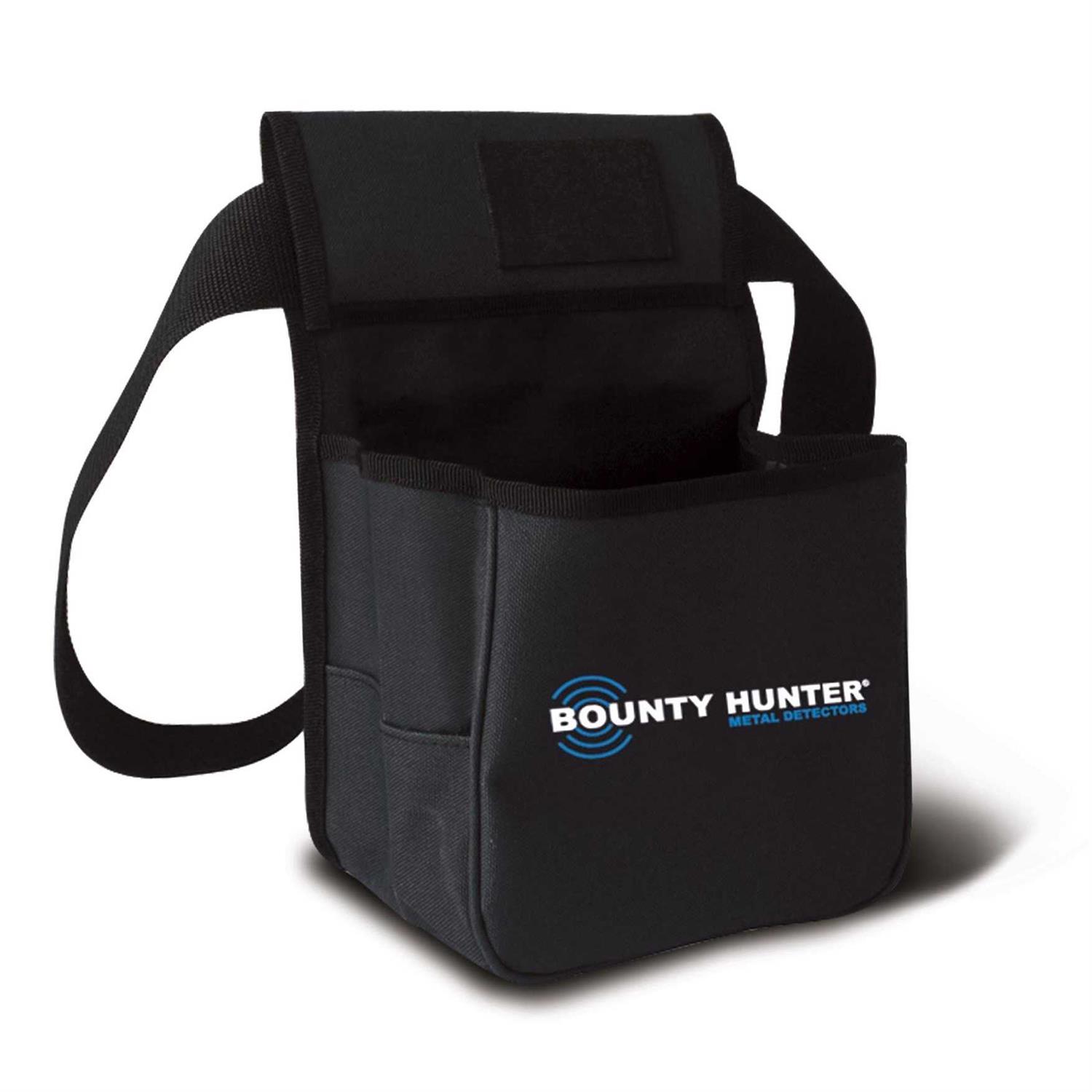 Stainless steel 9-inch trowel with plastic handle. Handy depth gauge. Keep finds in tough nylon pouch. 2-inch wide adjustable belt. A Bounty Hunter pouch and digger will help you to retrieve and secure your newly found treasure. The stainless steel 9-inch heavy-duty digging tool has a comfortable plastic handle and a handy depth gauge. Your finds can then be easily kept in the tough nylon pouch with a 2-inch adjustable web belt that contains two large pockets and two slide slip-in pockets.