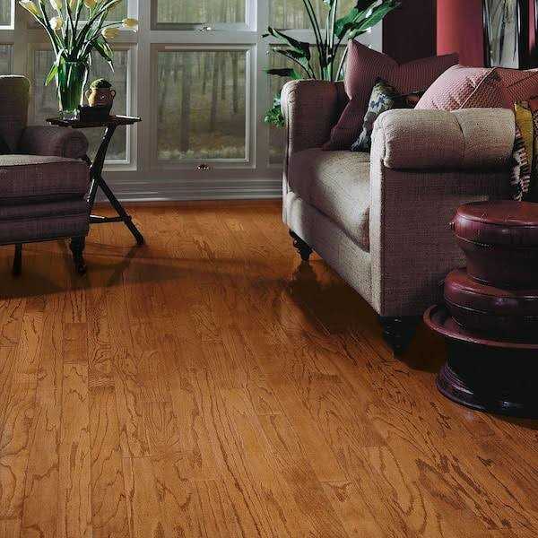 Thick x 3 in. Constructed from real domestic red oak hardwood, this 5-ply engineered flooring has square edges. It can be installed on all levels, including the basement, for versatile applications within the home, using either the floating, staple or glue down installation method. Made from Engineered Hardwood to ensure durability and stability. Glue, float, or staple installation provides versitility. Prefinished Butterscotch color, for a classic look and feel. Wood Species: Real Domestic Oak Hardwood 3/8 in. Thickness x 3 in. Width x Varying Length Planks Item coordinates with moldings made to match 3/8 in. engineered hardwood 31.5 square feet per case and case weight: 53 lbs. It is recommended you purchase a minimum of 10% overage to account for cuts.
