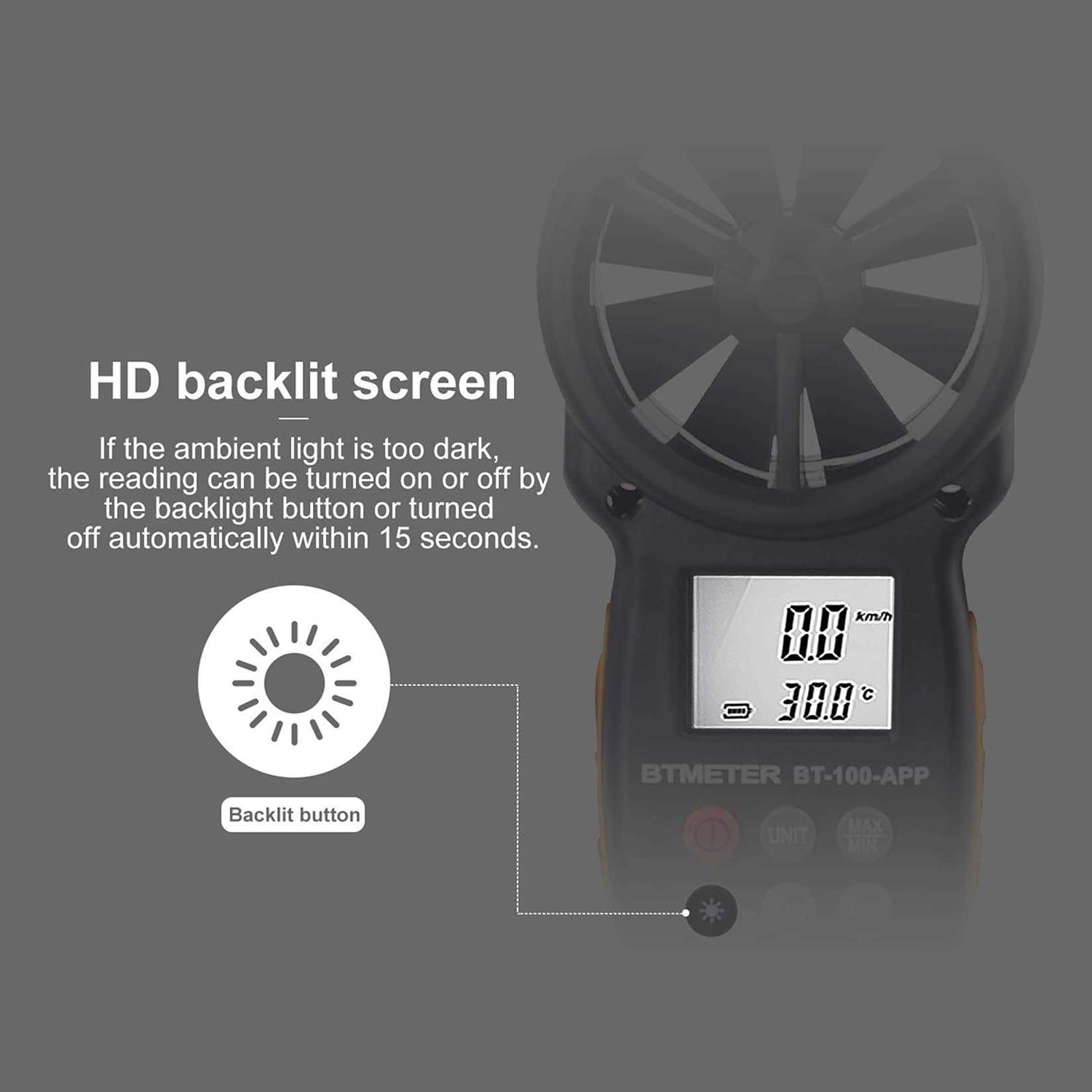 BTMETER BT-100APP Anemometer w/Wireless Bluetooth, Digital Handheld Wind Speed Meter for Wind Chill, Air Velocity, Temperatur
