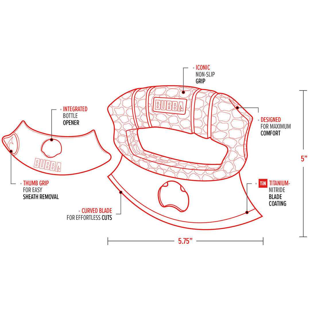 The Bubba Proteus Ulu Knife brings a unique and versatile blade to the Bubba family that allows you to cut like a pro. From its roots of Native Alaska, the Proteus Ulu Knife allows users to experience a whole new style of cutting. Using a natural rocking motion, the Proteus Ulu Knife’s curved blade makes it easy to cut through fish, vegetables, pizza, or whatever else you may have on your dinner menu. The Proteus Ulu Knife is engineered with Bubba’s signature non-slip grip and Commercial Grade 420 Stainless Steel making it durable enough to handle the rough waters while at sea and functional enough to be used by a professional chef while in the kitchen. Bubba’s ergonomically-designed handle and perfectly aligned thumb pads allow for unmatched comfort and extreme dexterity. Bubba’s even included a bottle opener so you can pair your favorite beer with your freshly prepared meal. Take the hard work and chore out of cutting with a new Bubba Proteus Ulu Knife.