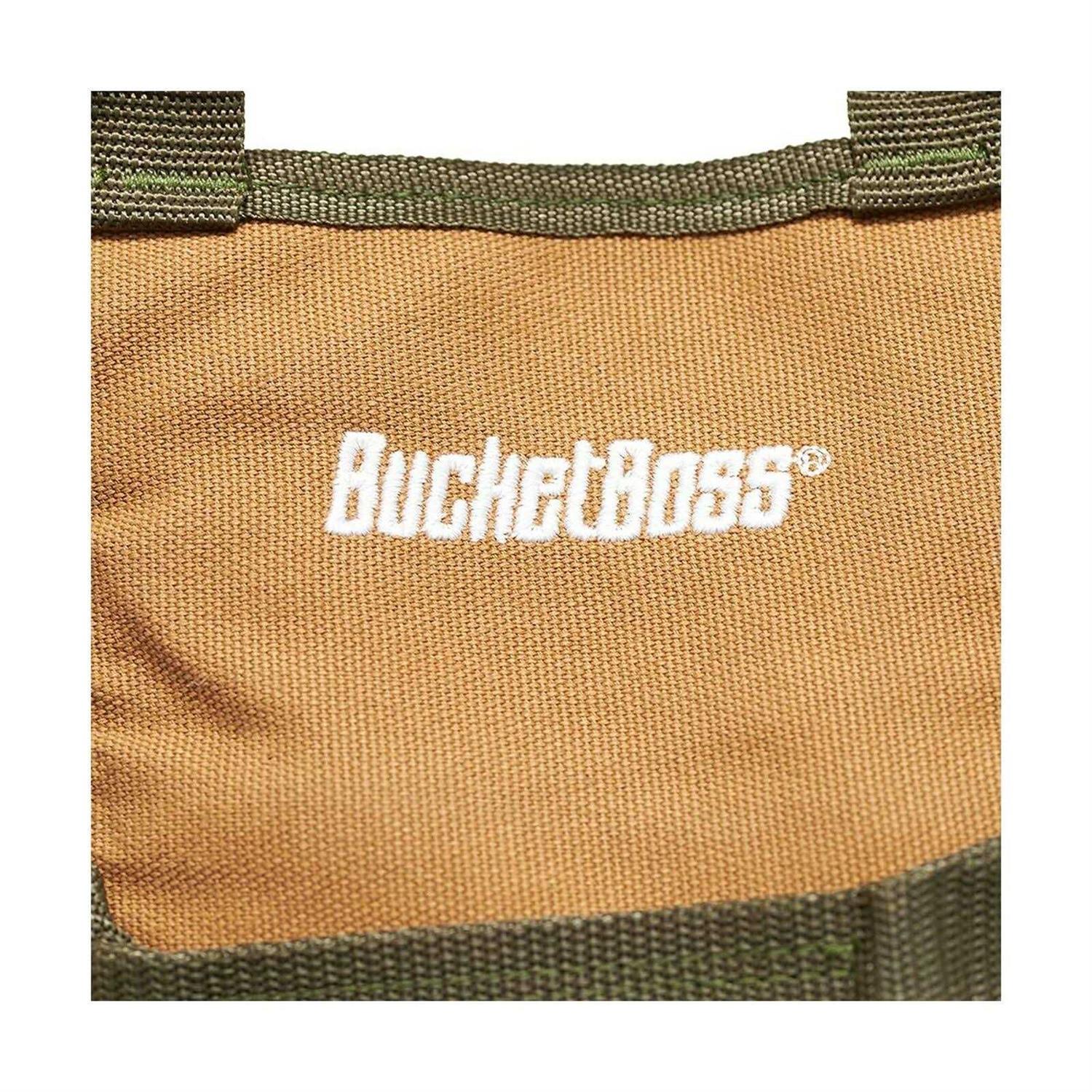 Bucket Boss 74004-bucketboss Super Roll Tool Holster, 6 Pockets Features and Benefits: Heavy Duty Duckwear Canvas 5 Zippered Pockets: Each 3″ x 13″ x 3.25″ 1 Flat Pocket 11″ x 5.5″ Grommets for Hanging 2 Carry Handles Quick Release Buckles to Secure when Rolled Up Dimensions: Rolled: 4.5″ Diameter, Opened: 26.5″ x 14″