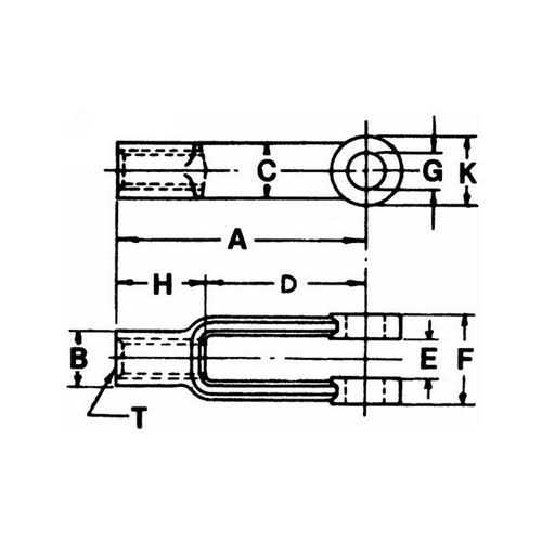 - Buyers B27087ANF Adjustable Yoke End 5/8″-18 NF A 4.938″ B 1.063″ C 1.063″ D 3.688″ E 0.688″ F 1.375″ G 0.625″ H 1.250″ K 1.188″ T (thread) 5/8″