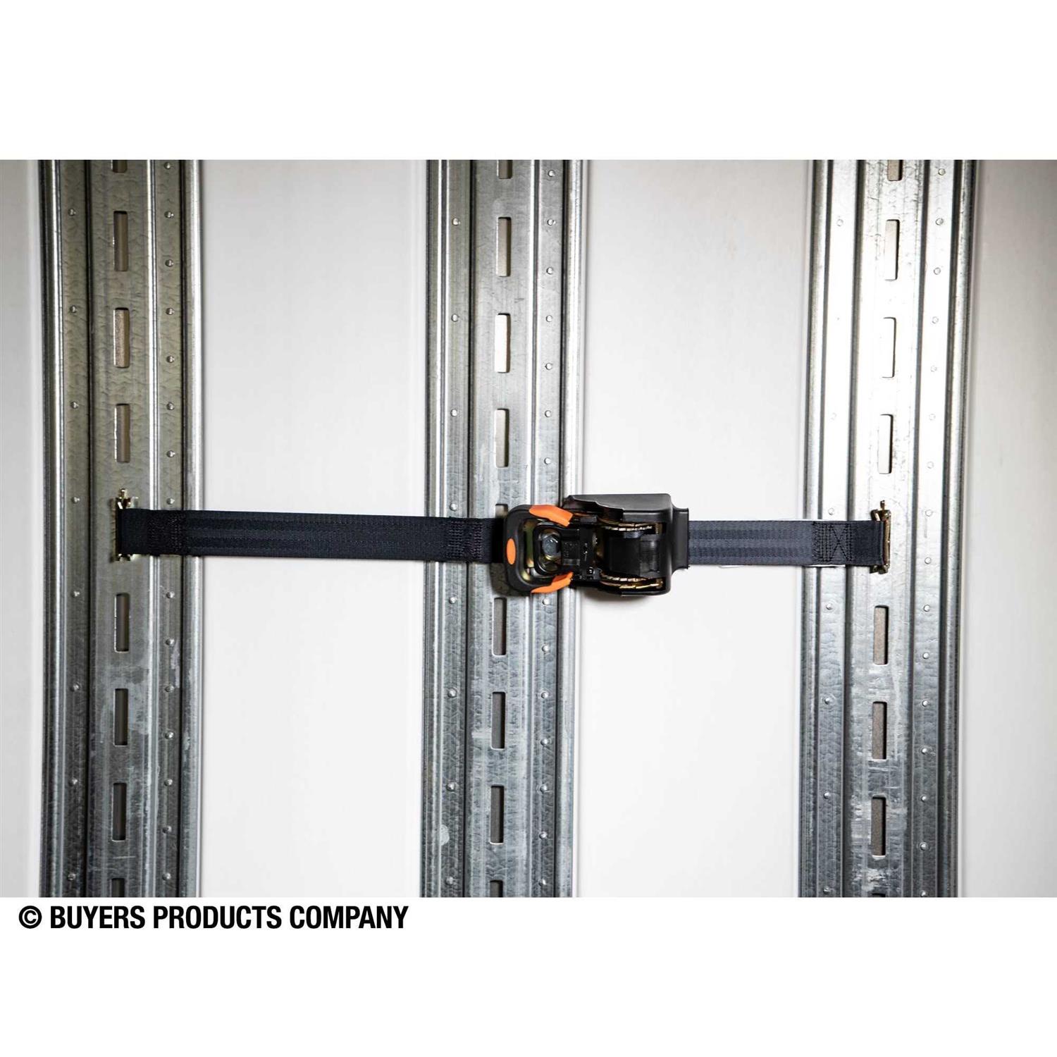 This Buyers Products Retractable Ratchet Tie Down is designed for hassle free attachment and storage. The reliable high quality ratchet features a nylon strap that is perfect for securing heavy loads up to 1,000 lbs. The E-track attachment lets you position the ratchet in multiple locations along an E-Track system making it simple and convenient to quickly secure loads. The spring retracting spool helps keep the ratchet in place and makes it easy to store when not in use. The soft rubber grip handle prevents your hand from slipping. A bolt-on option is included for permanent mount applications.