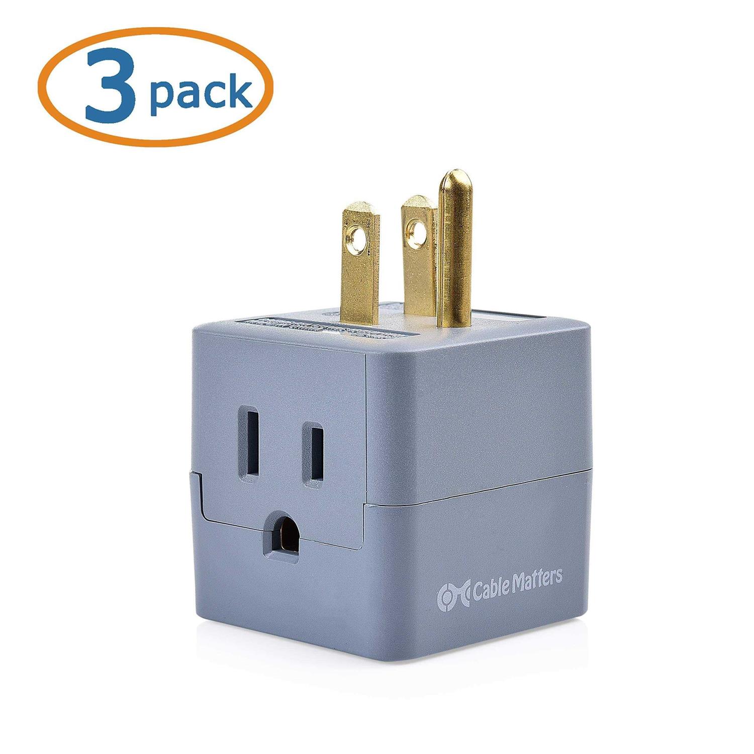 Cable Matters (3-pack) 3-Outlet Grounded Cube Wall Tap