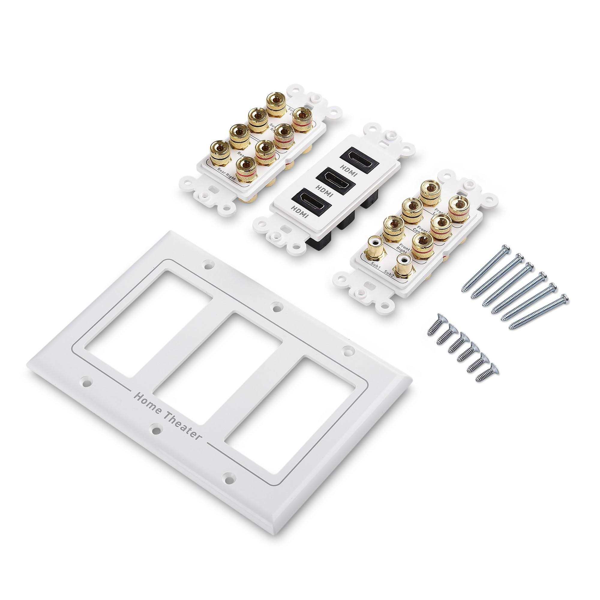 Cable Matters Triple Gang 7.2 Speaker Wall Plate with HDMI (Home Theater, Banana Plug Wall Plate) in White