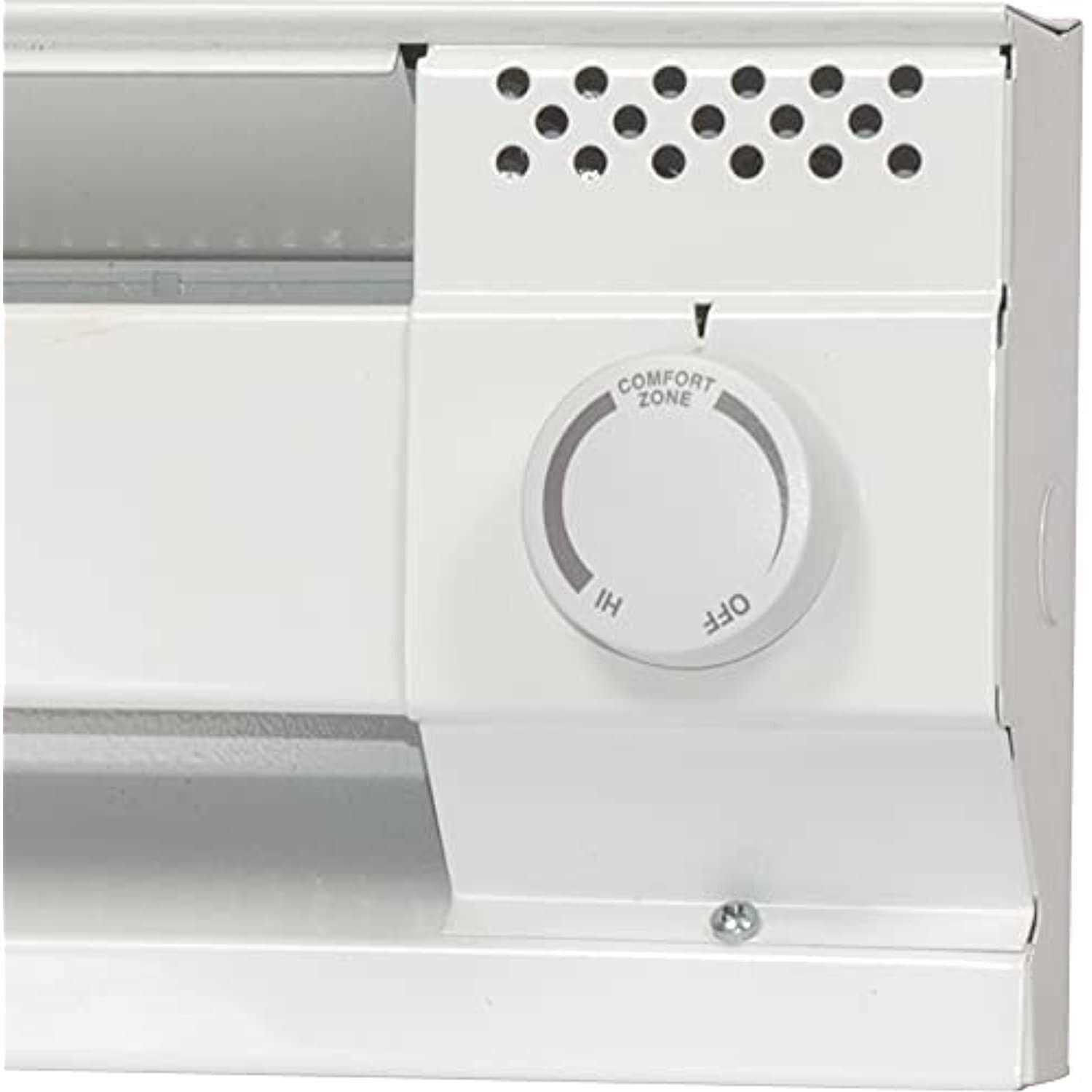 The Cadet Double-Pole Baseboard-Mount Thermostat conveniently mounts to either end of a Cadet baseboard heater. It installs easily and eliminates the need for additional wiring. This thermostat offers a large, twist-dial design that adjusts smoothly for temperature regulation in your room. – Highlights:Color: white22 Amp – Double-pole4-wire, unit-mount design. Non-programmable, easy to use – Compatible with 120/240 volt baseboard heaters. Mounts to either end of a Cadet baseboard heater – Positive off setting is standard feature of a double pole switch.