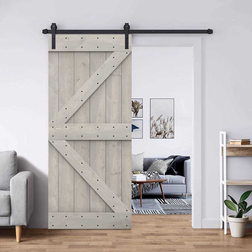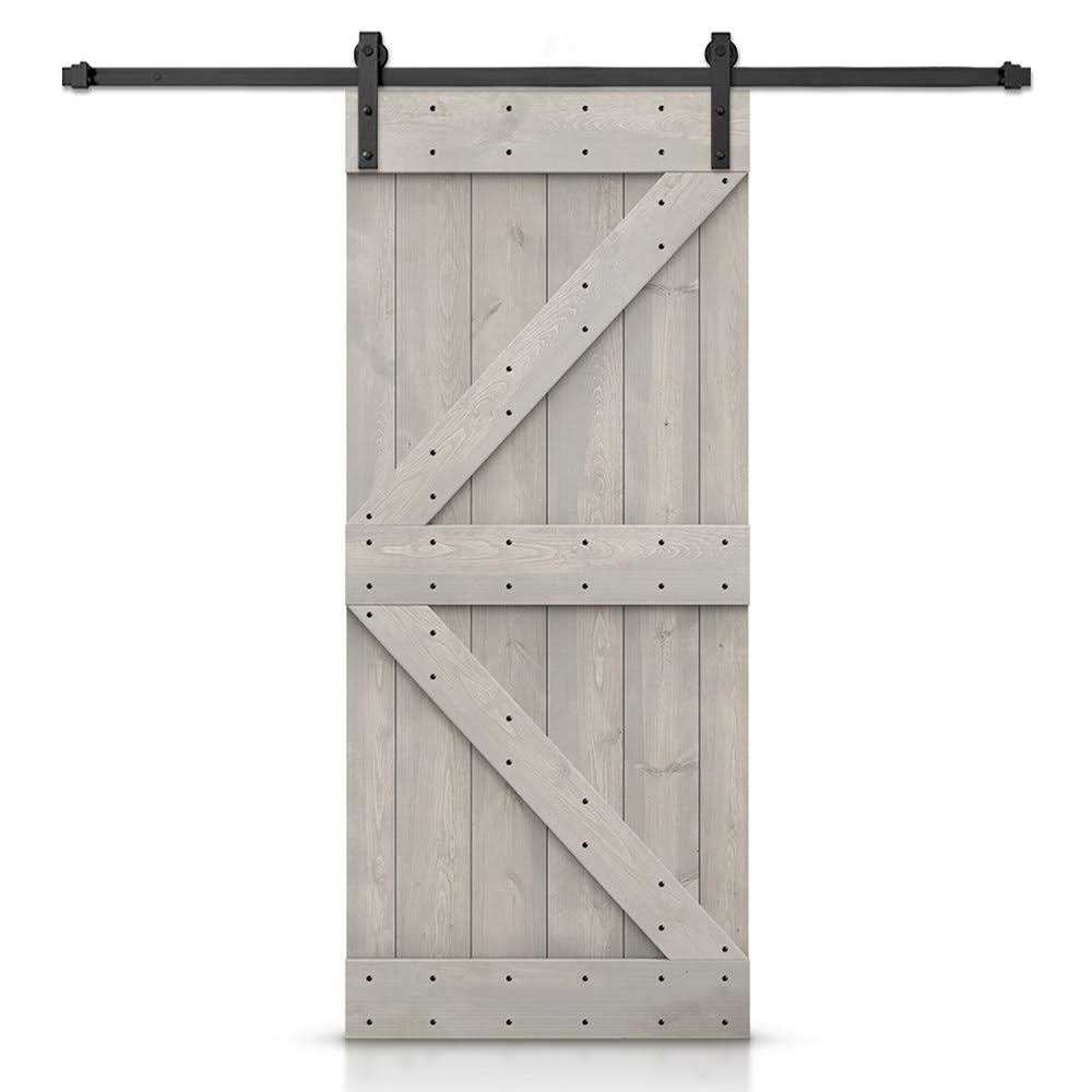 CALHOME K Series 36 in. x 84 in. Gray DIY Knotty Pine Wood Interior Sliding Barn Door with Hardware Kit