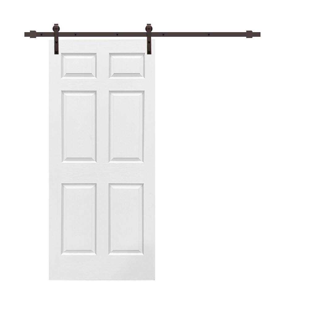 CALHOME 36 in. x 80 in. White Primed MDF 6 Panel Interior Sliding Barn Door with Hardware Kit