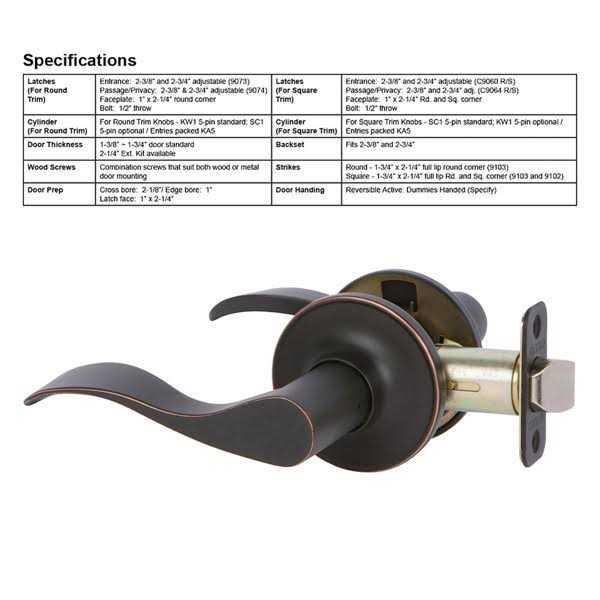 - Comes standard with a round corner latch faceplate and 1/2″ throw