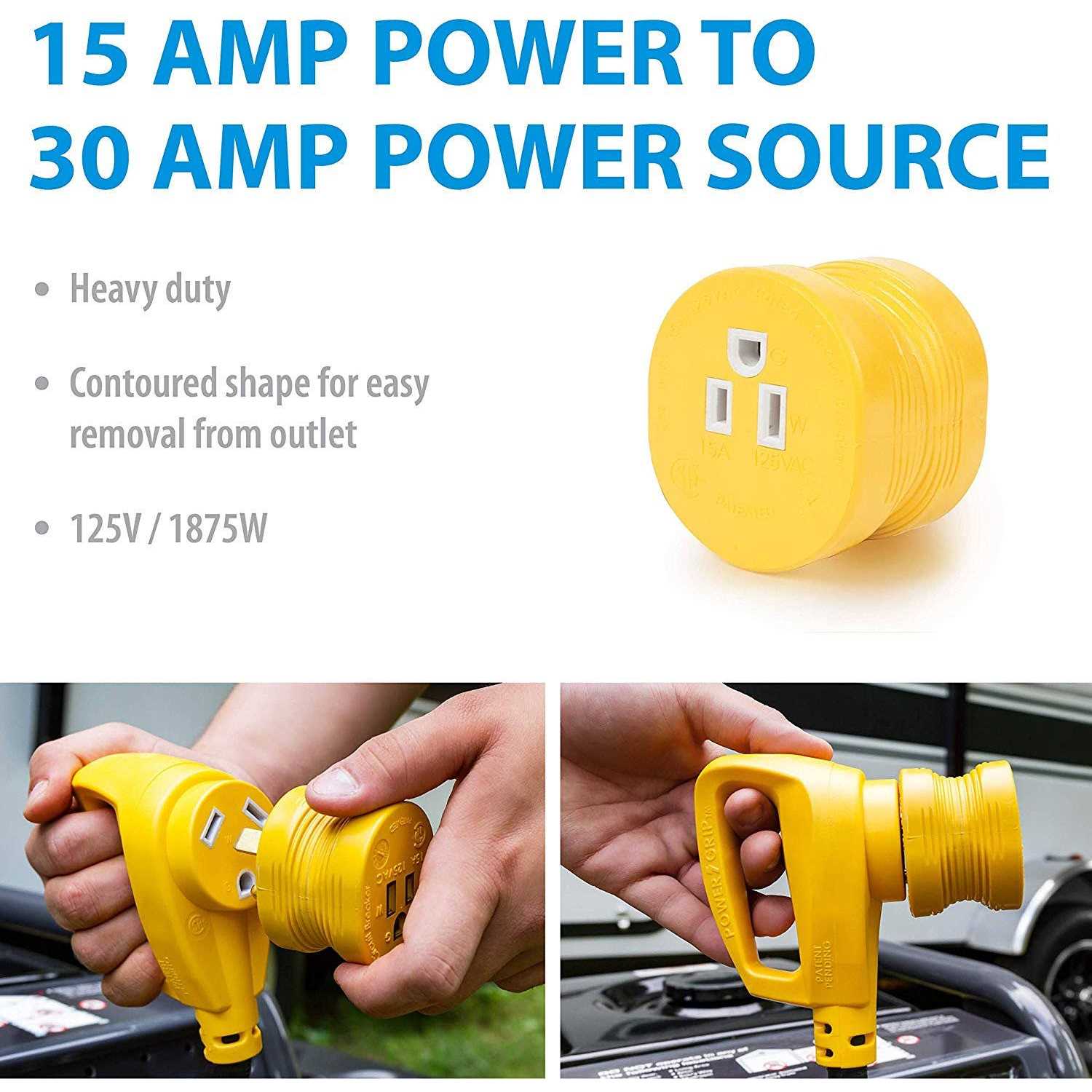 - For use when RV has 15 AMP power and needs to plug into 30 AMP power source