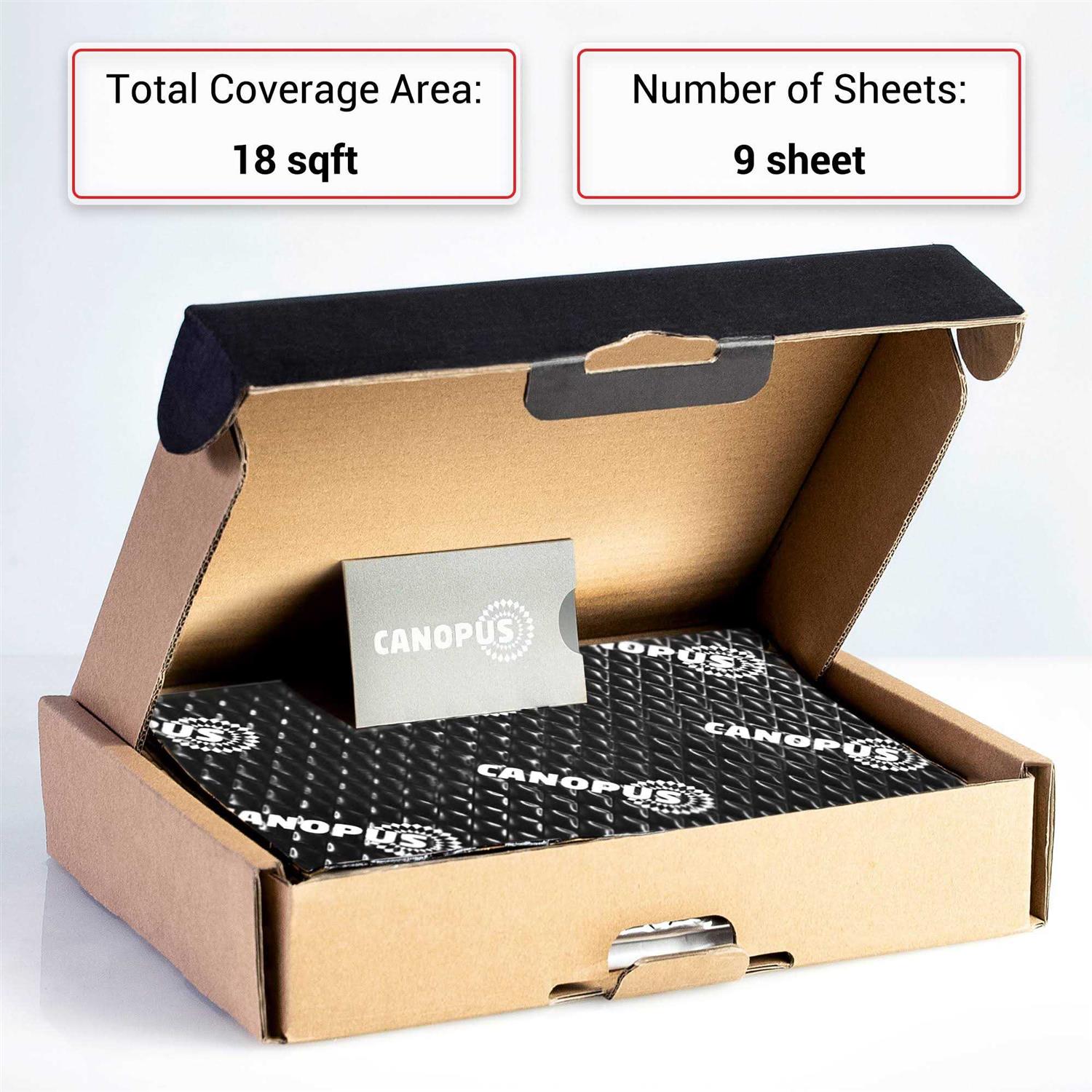 Canopus Car Sound Deadening Mat, 80 Mil 18 sqft, Pack of 9 Sheets, Butyl Sound Deadener Mat, Audio Car Sound Dampening Material for Car Trunk