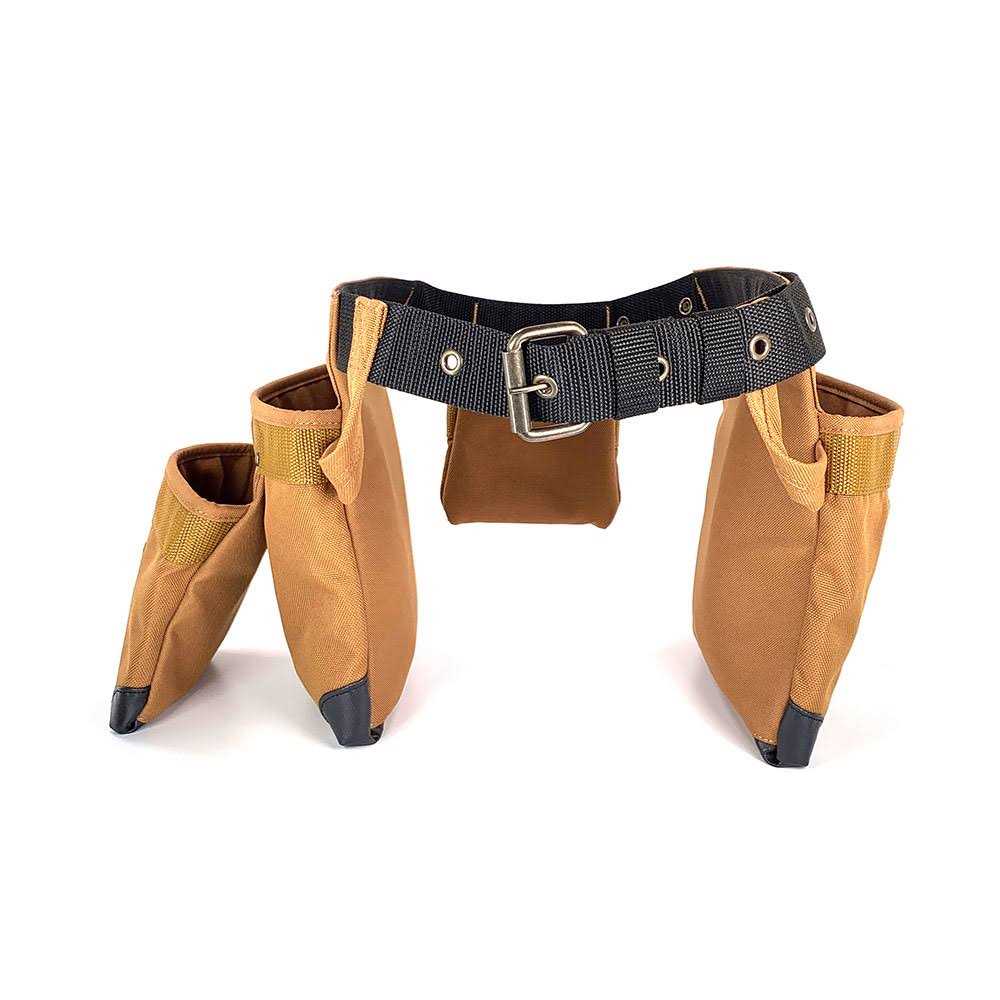 Crafted from tough 100% Polyester with a 1200 Denier DWR Polyester construction this waist belt is protected by a Rain Defender finish. The adjustable webbing waist belt accommodates up to a 52’/132cm waist and it comes with nine pockets and loops for storing tools and essentials. Additionally it has a metal tape measure holder and hammer loop. The Carhartt label sewn on the pocket adds an authentic touch.