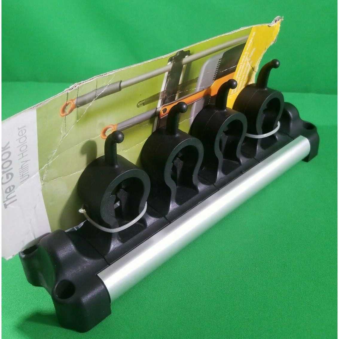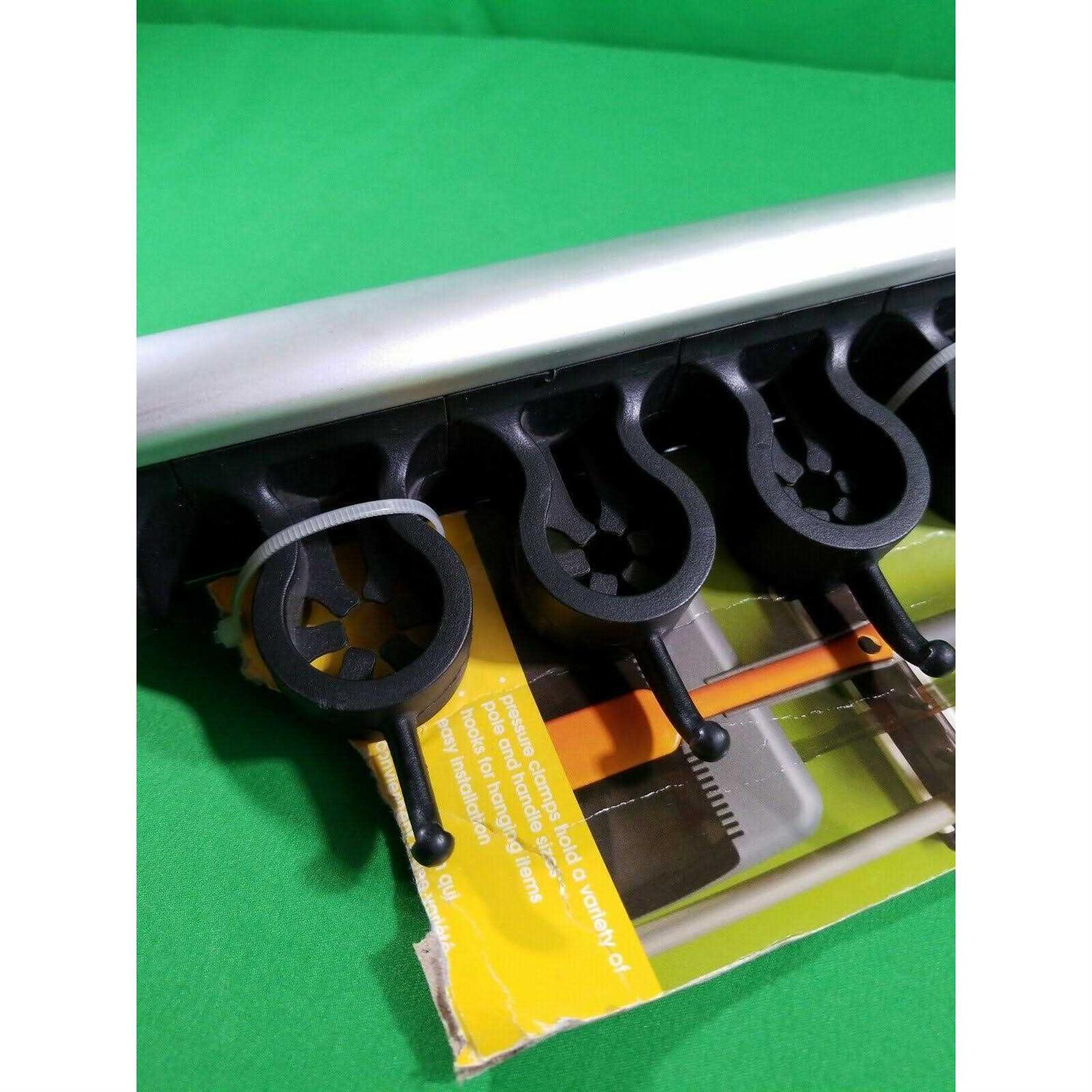 This clever storage device is designed to grip and hold poles and handles with a large variety of dimensions – perfect for organising sports equipment, cleaning tools and gardening tools etc. The aluminium hold and rubber Grook will not rust and can be left outdoors. Handy hooks at the front hold smaller items. Toggler Anchor System hardware is included for mounting onto plaster, sheet rock, wood or masonry walls.
