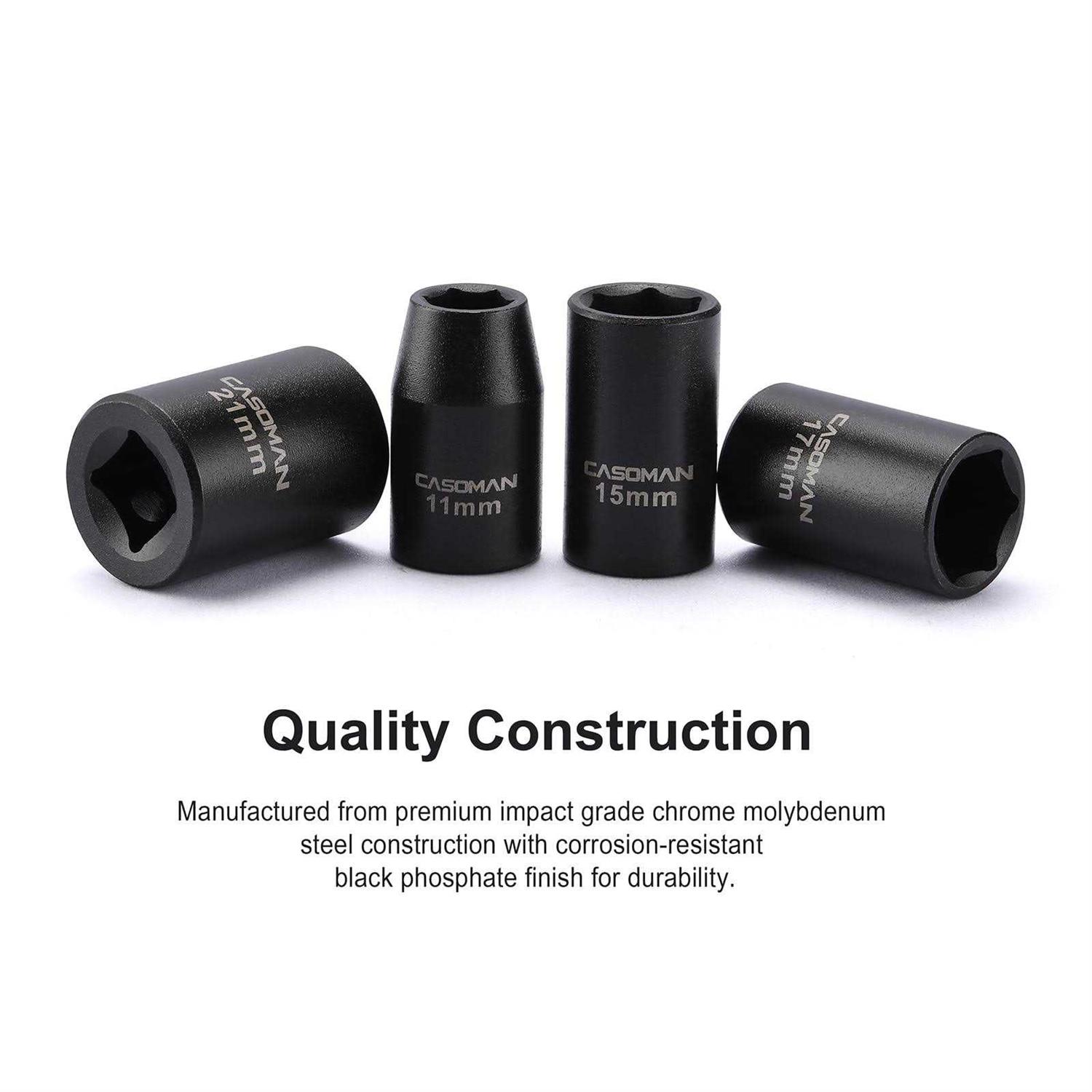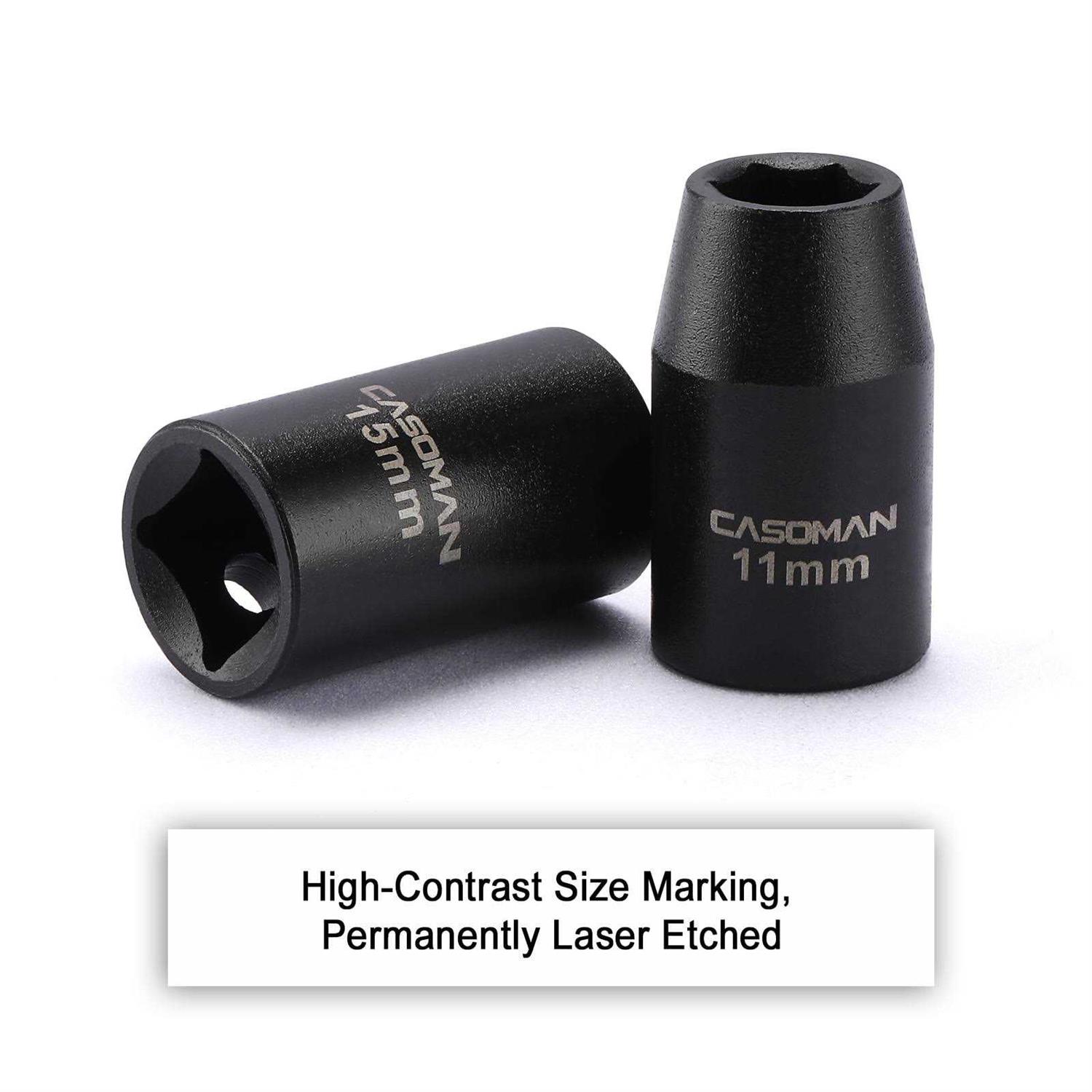 CASOMAN 14 Pieces 1/2-Inch Drive Shallow Impact Socket Set, Metric, 6-Point, 11mm to 32mm
