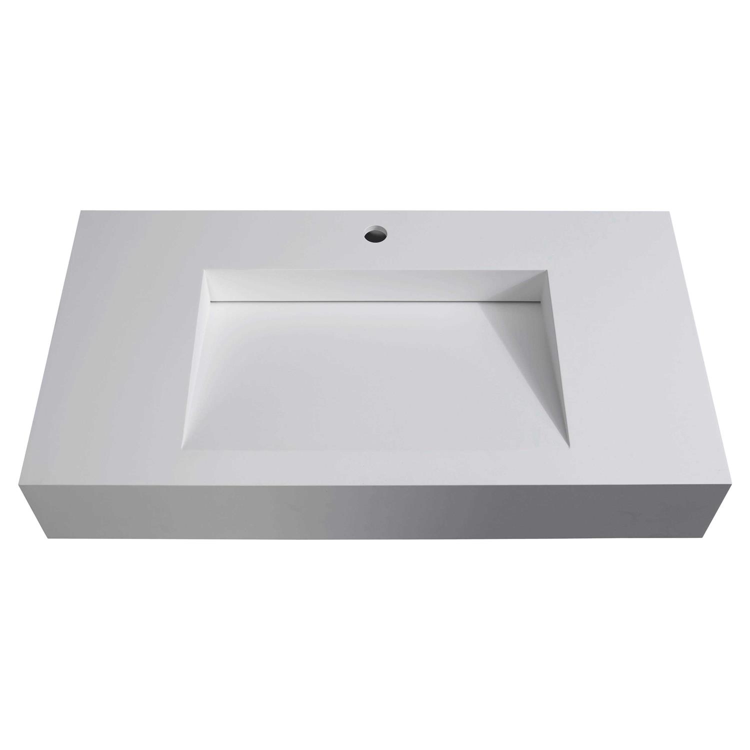 Castello USA Inc Pyramid 36″ Solid Surface Bathroom Sink in White No Faucet Hole