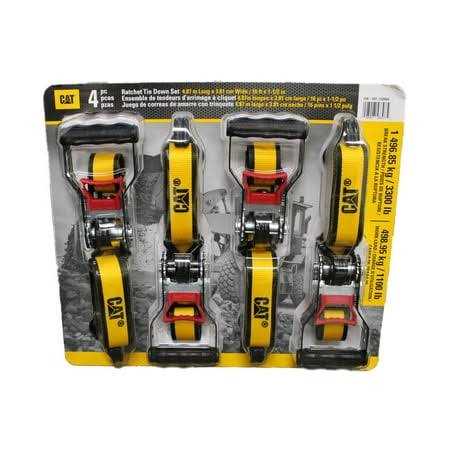 Cat Straps Ratchet Tie Down 4 Piece Set 16 Feet Long x 1-1/2 Inches Wide 3,300 Pound Breaking Strength 1,100 Pound Working Strength