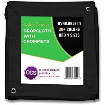 CCS Chicago Canvas & Supply 10 Ounce Canvas Cotton Drop Cloth with Grommets, Black, 10 by 12 Feet