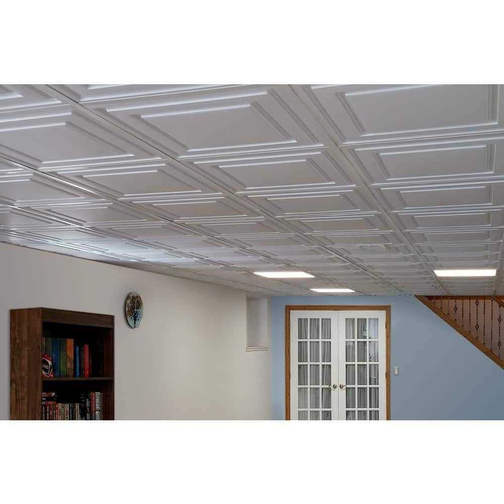 Stratford White Feather-Light Ceiling Panels are unlike any ceiling tile you will ever see or feel. When you take them out of the box you will be surprised by the minimal weight of their Feather-Light construction. Ceilume Stratford panels are formed from a thin sheet of vinyl that is only 0.013 in. thick about the thickness of a business card. But the Stratford’s geometric design combined with the inherent strength of vinyl makes these tiles rigid durable and easy to install. Their unique design tricks the eye into seeing 2 separate square tiles rather than one big 2 ft. x 4 ft. tile. The Stratford White Feather-Light Ceiling Panels are not at all like the old mineral fiber tiles you’ve used in the past and that’s a good thing. They don’t generate dust they’re unaffected by moisture they don’t harbor mold and they’re easy to cut. Their white finish is bright pure and easy to clean. Place them in your ceiling grid and you’ll be thrilled by the way the Stratford improves the look of your room. Made throughout from durable 0.013 in. thick white virgin vinyl material; these panels will not rust stain corrode or be affected by water Designer beauty only better!