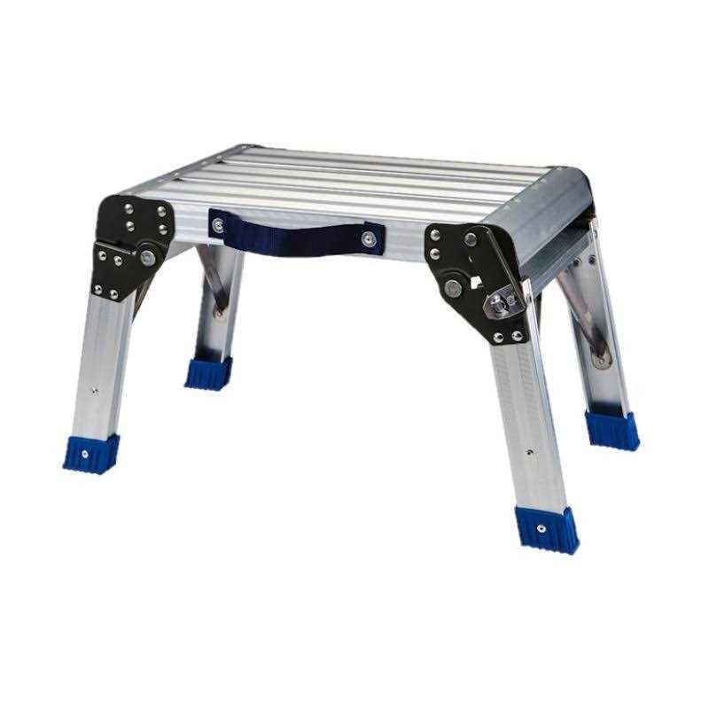 This sturdy working platform supports up to 375 lbs. When the job’s done, just fold the working platform up and take it away with its convenient carry handle.