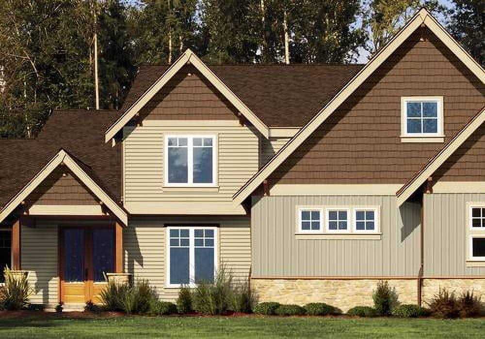 The Cedar Impressions Double 7 Inch Staggered Rough-Split Vinyl Shakes Shingle is a staggered edge design that creates a beautiful, classic appearance found on the most extraordinary homes. The Double 7 vinyl shingles include fastening indicators, reinforced nail slots, molded perimeter lock, rough-split, hammertapper, STUDfinder, temperature lines, and a patented PanelThermometer to ensure easy and precise installation. This CertainTeed vinyl siding is manufactured with a flame spread index of less than 25 and is in compliance with IBS, IRC, Florida Building code, and National Building Code of Canada. CertainTeed Double 7 Inch Vinyl Siding offers an industry-leading array of colors including dark shades and semi-transparent stained colors for essentially unlimited design possibilities. Using the newest technology and state-of-the-art formulas, this process can digitally recreate texture from actual wood shingles and helps replicate the look and feel of real cedar shingles. In addition to the exceptional looks, they resist the damaging effects of most weather and yet require very little maintenance. Whether the view is of a rolling ocean, restful lake, or main street, the finest homes have traditionally been sided with real cedar shingles. Cedar Impressions Double 7 Inch Staggered Rough-Split Shakes Shingle offers aesthetic and performance qualities second to none and suitable for any style home.