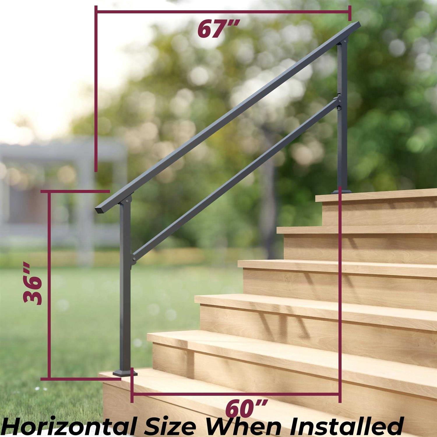 Chr 6 Steps Outdoor Handrails for Outdoor Steps, Black Wrought Iron Hand Rail Stair Railing Kit (5-6 Steps Handrail) CRHR5″