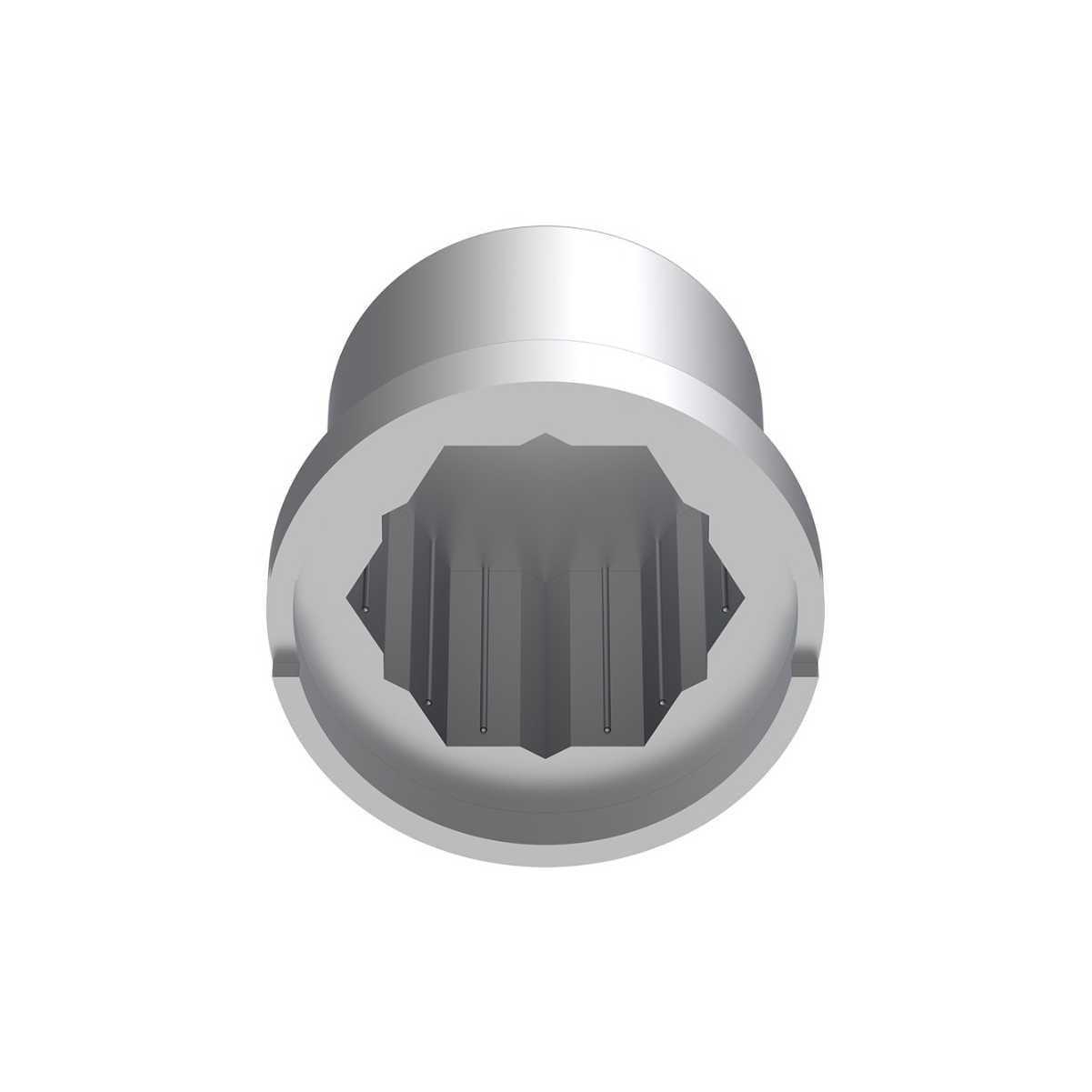 - Chrome plastic flat top push-on nut cover for hex nuts and bolts.