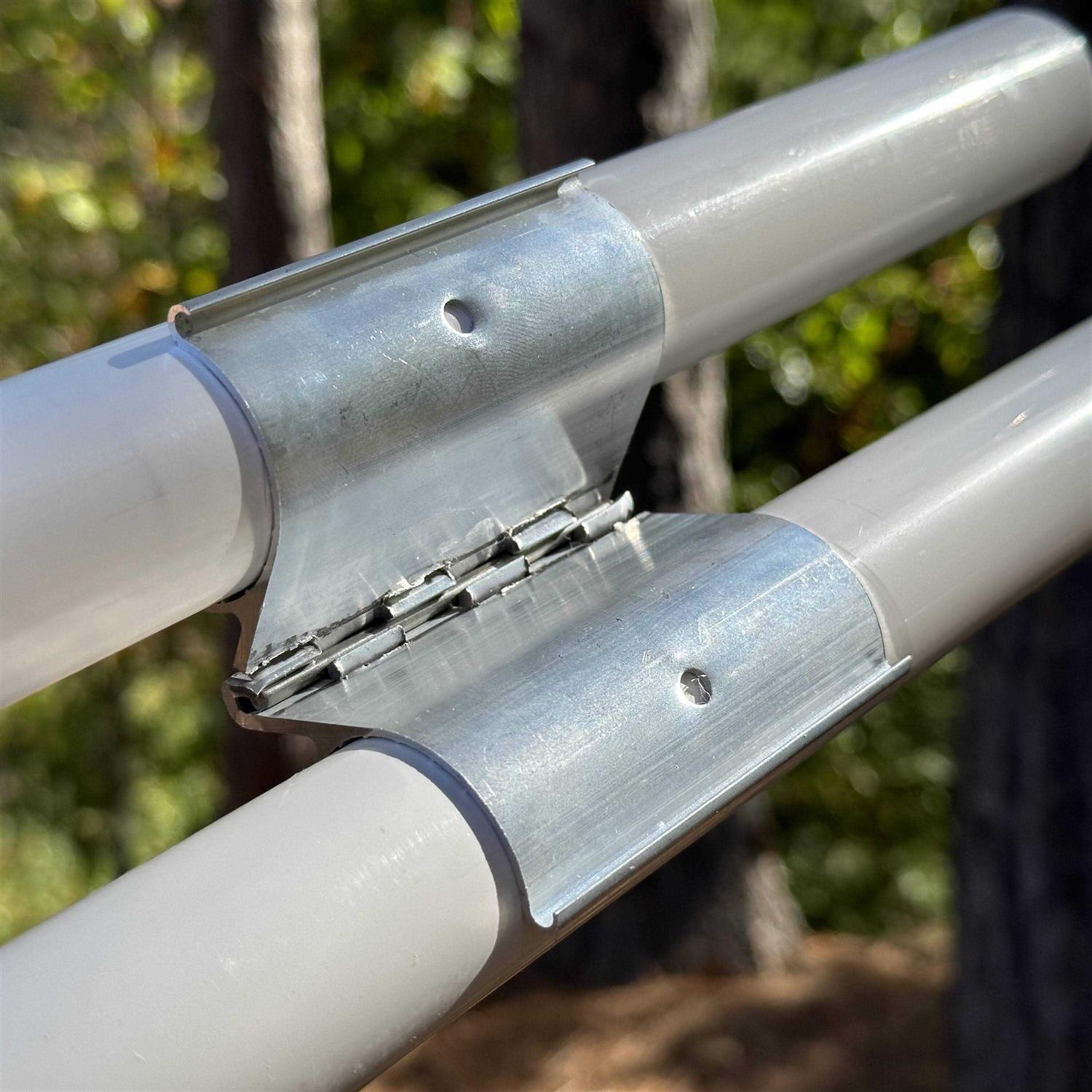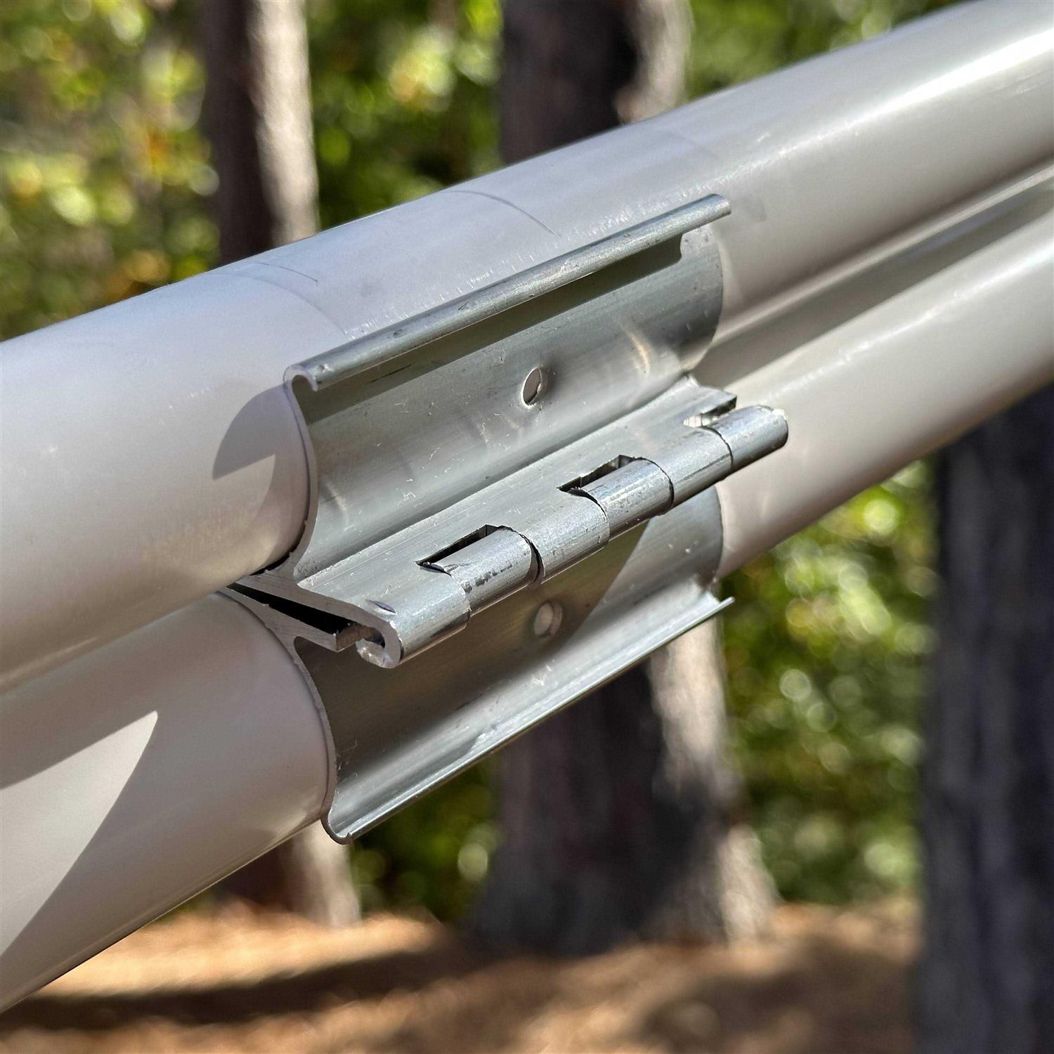 The Aluminum Snap Hinge consists of two Grip Clamps attached by a hinge enabling the user to fashion a door, window, vent, or any other design that requires a hinge feature. To use on 1/2 inch projects use the 1/2 inch Snap Clamps first then clamp this over that. This works great for dog pens, chicken coops, greenhouse doors and windows, and vents.
