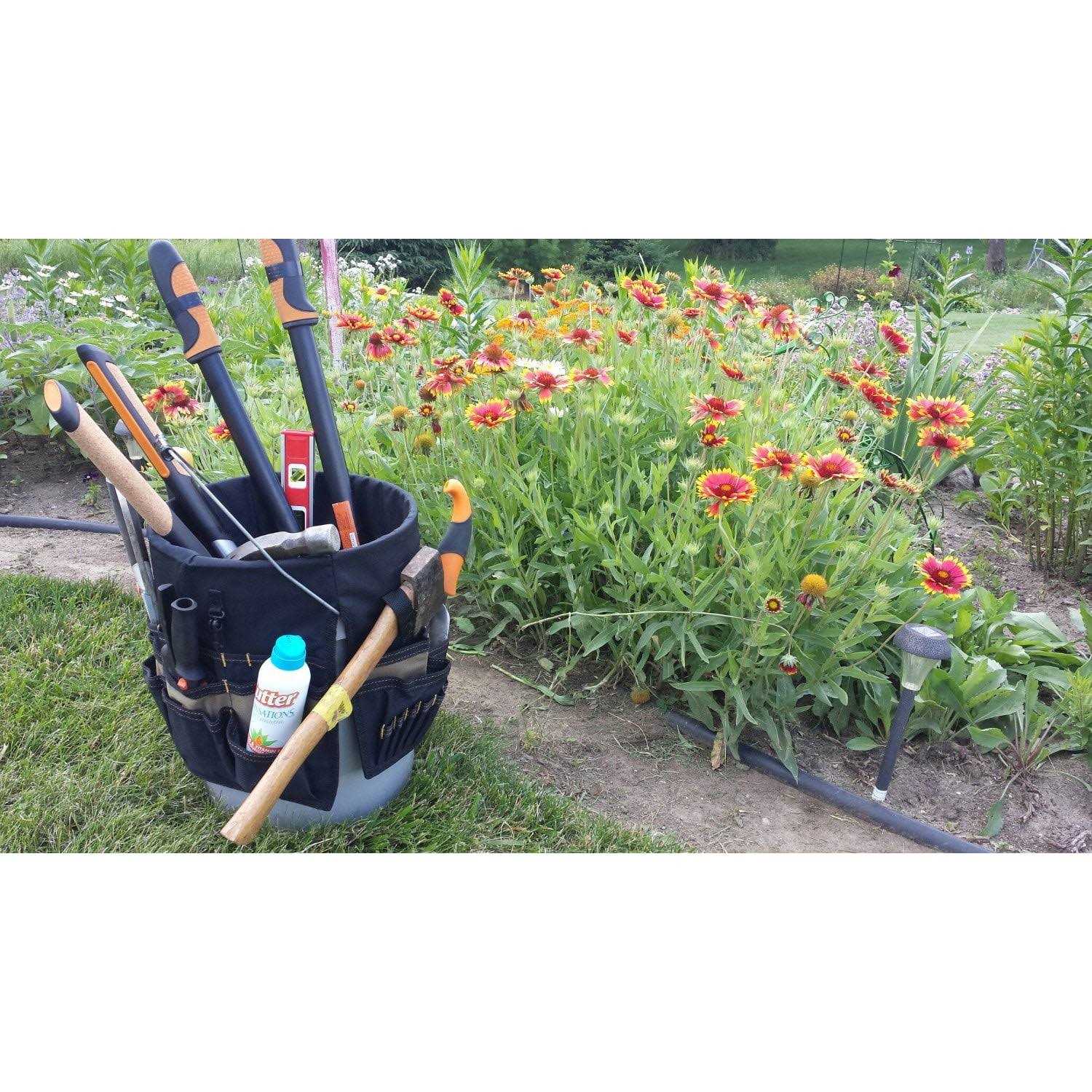The CLC 1119 is an excellent solution for installers and repair technicians, DIY handymen, or even gardeners who need to transport tools quickly and easily. The tool bucket design incorporates pockets and sleeves of various sizes and configurations to hold a multitude of tools and small parts. The CLC 1119 is great for HVAC, satellite/cable television technicians or gardeners who what to have their tools close and a place to discard weeds. This tool bucker organizer includes 48 pockets and sleeves. It is also includes interior pockets to provide the contractor or gardener organization of tool groups. Fourteen double row pockets inside this bucket caddy and thirty four triple row outside organize a wide range of tools and gardening accessories. Custom Leather Craft has included a section to hold an extension cord and, pliers, screwdriver, and much more. This bucket garden caddy/tool bag also has a hook and loops.