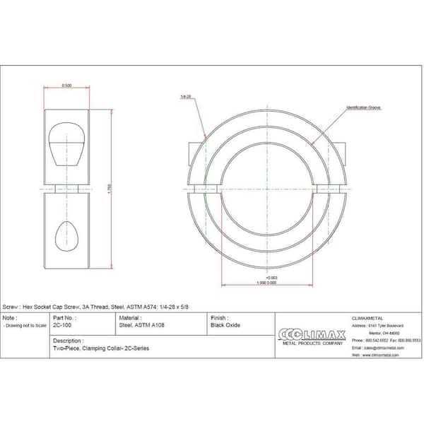 Climax Metal Products 2C-100 Shaft Collar,Clamp,2Pc,1 In,Steel