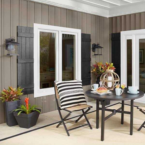 The traditional appeal of board and batten shutters built to last and maintenance-free, they offer the perfect finish to Rustic, informal exterior styles such as Craftsman, shingle, Tuscan and Spanish eclectic-onlyl from ply gem. Set includes 2 high-quality shutters.