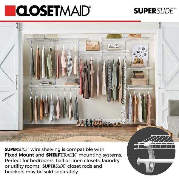 Organize your wardrobe with the ShelfTrack hang track. Epoxy coating on the hang track provides durability and sturdiness. This wall-mount shelving rail securely fixes on the wall to firmly support the shelf track. The ClosetMaid hang track easily adjusts to move the shelves on the rail.
