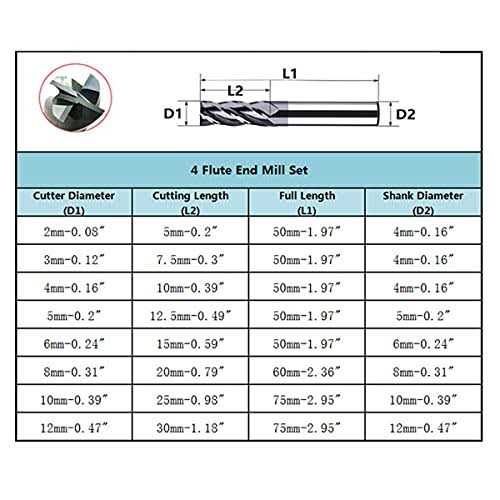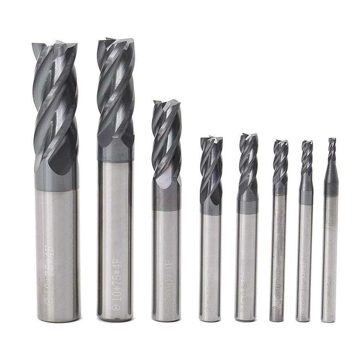 CNC End Mill Set, Carbide Tungsten Steel 4 Fultes Milling Cutter, Router Bits Rotary Bits Tool Straight Shank 2-12mm 8pcs